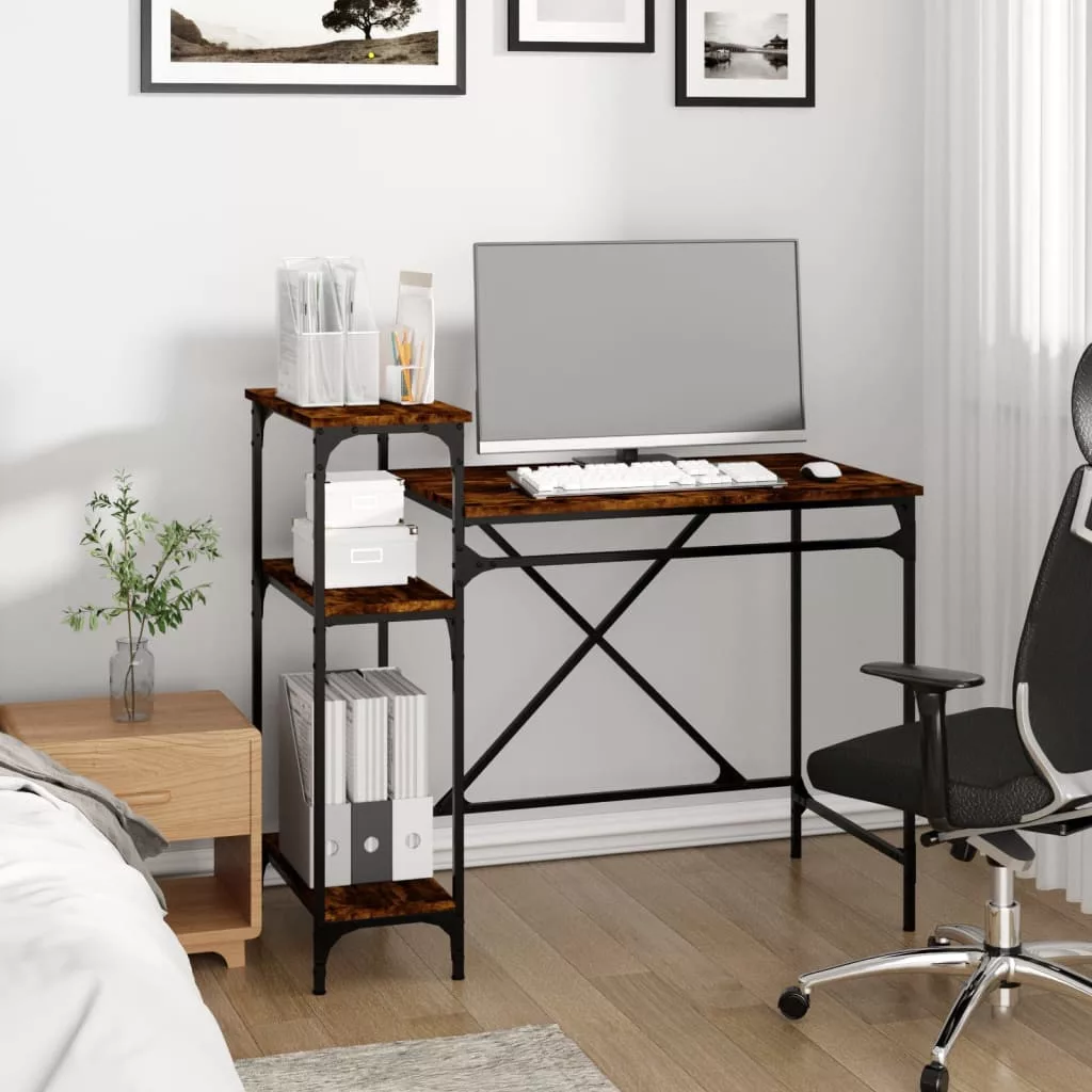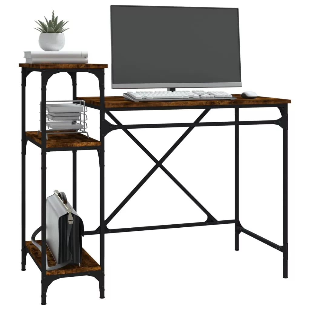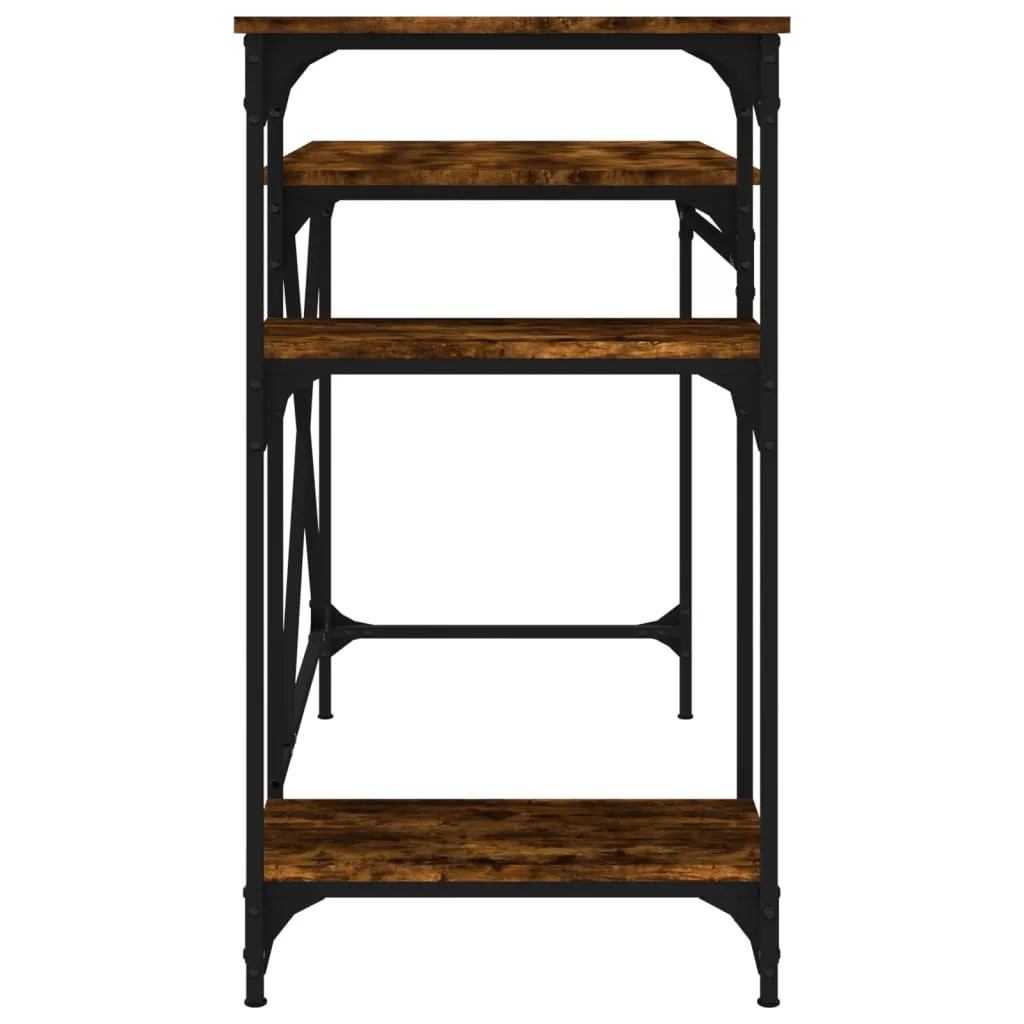 vidaXL füstös tölgy szerelt fa és vas íróasztal polcokkal 105x50x90 cm