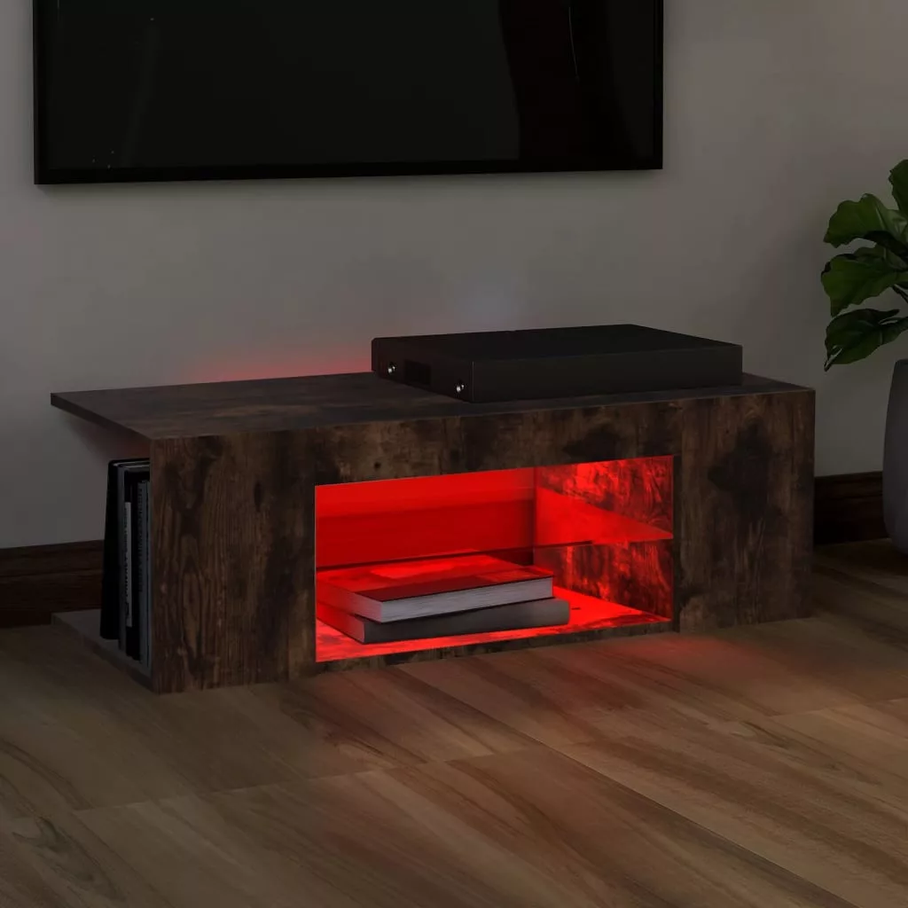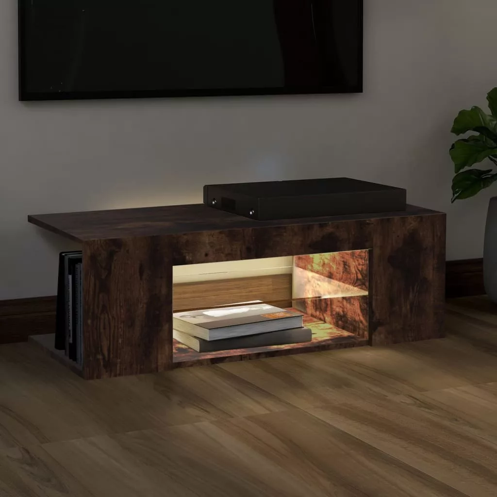 Ez a stílusos, mégis praktikus kialakítású LED-lámpákkal ellátott TV-szekrény minden bizonnyal szobája középpontjává fog válni.
