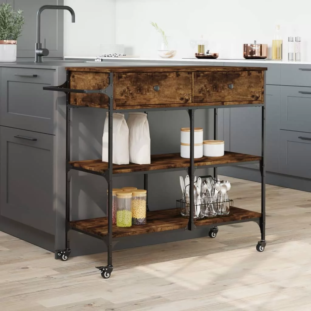 vidaXL füstös tölgy színű szerelt fa zsúrkocsi 105 x 42 x 95 cm