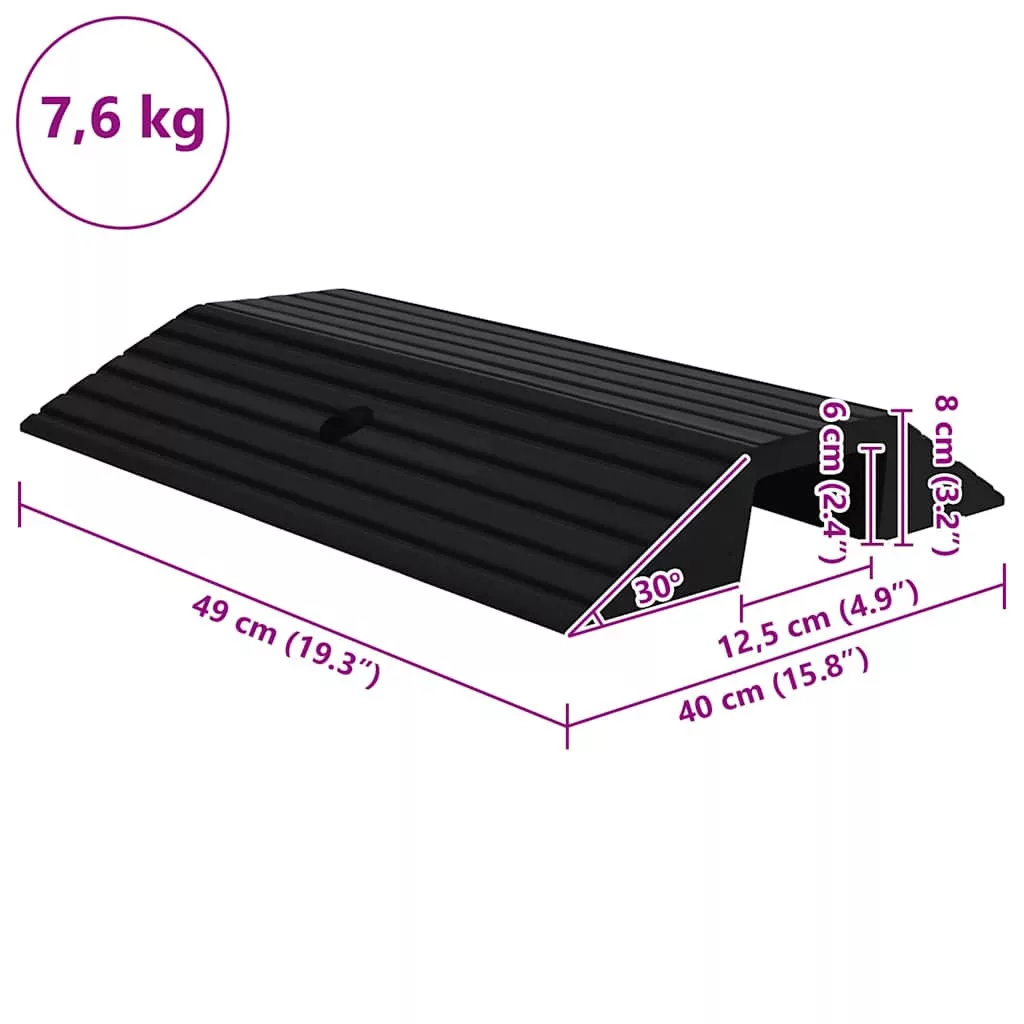 Ez a járdaszegélyrámpa tömör gumiból készült, így könnyű súlyú, strapabíró, és hosszútávú használatra alkalmas. A durva felület csúszásgátló bevonattal van ellátva, amely meggátolja a járművek megcsúszását, amikor éppen felfelé haladnak.