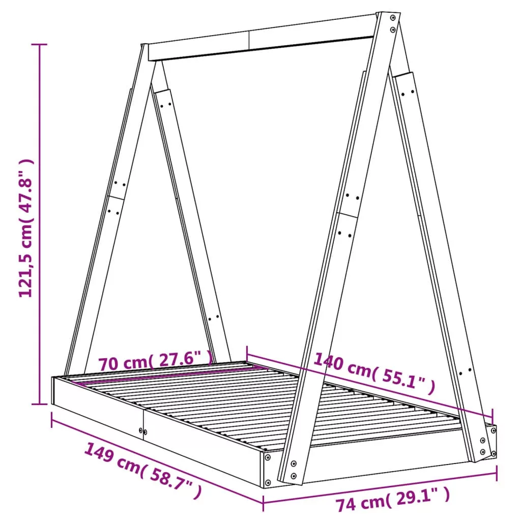 - Tömör fenyőfa: A gyerekágykeret tömör fenyőfából készült. A tömör fenyőfa egy gyönyörű természetes anyag. A fenyőfa egyenes erezetű, a csomók pedig jellegzetes, rusztikus megjelenést kölcsönöznek az anyagnak.