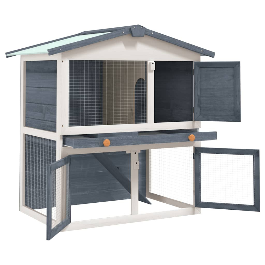 A nyúlketrec kiváló minőségű fakeret felhasználásával készült, ami erőssé és biztonságos elkerített területté teszi, ami évekig kitart. Zöld teteje távol tartja az esőt, miközben a kényelmes búvóhely tökéletes alvóhelyet biztosít. Könnyen megmászható rámpa vezet az alsó földszintről a felső szintre. A kihúzható tálca megkönnyíti a tisztítást. Az ajtók könnyen becsukhatók, és csúszóretesszel zárhatók.