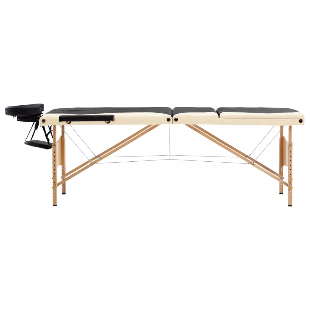 A háromzónás, összecsukható, favázas masszázsasztal otthoni és professzionális használatra is alkalmas.