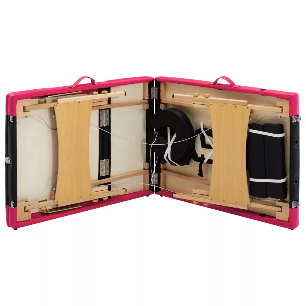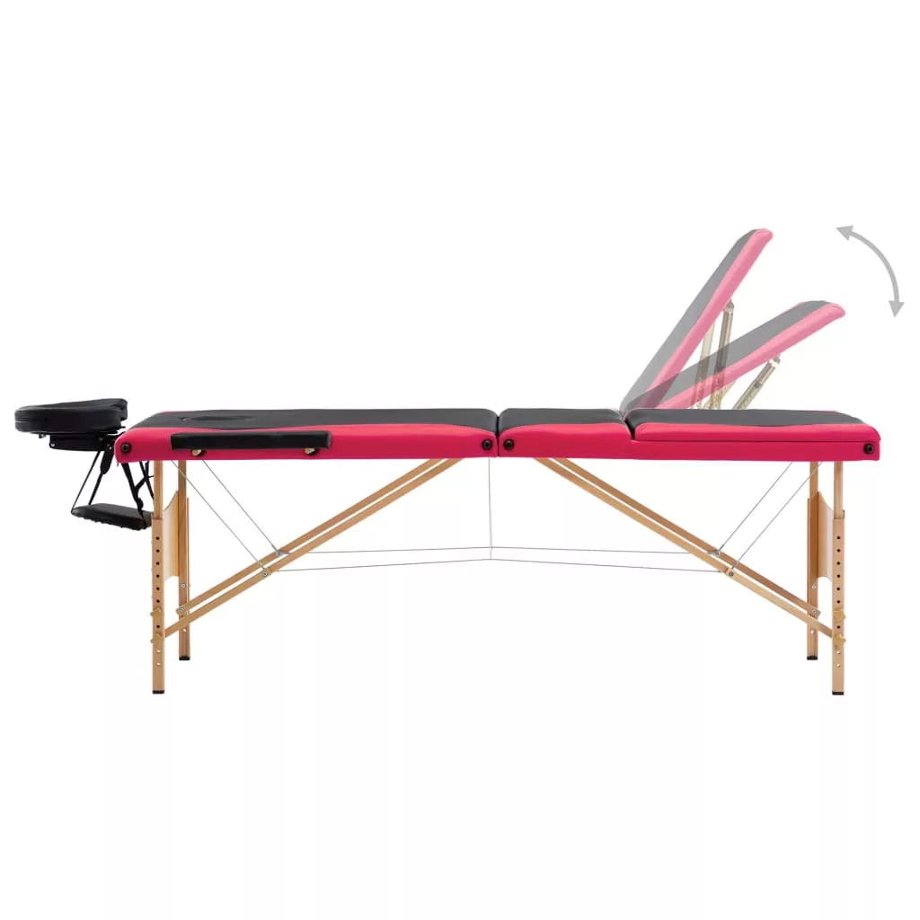 A háromzónás, összecsukható, favázas masszázsasztal otthoni és professzionális használatra is alkalmas.