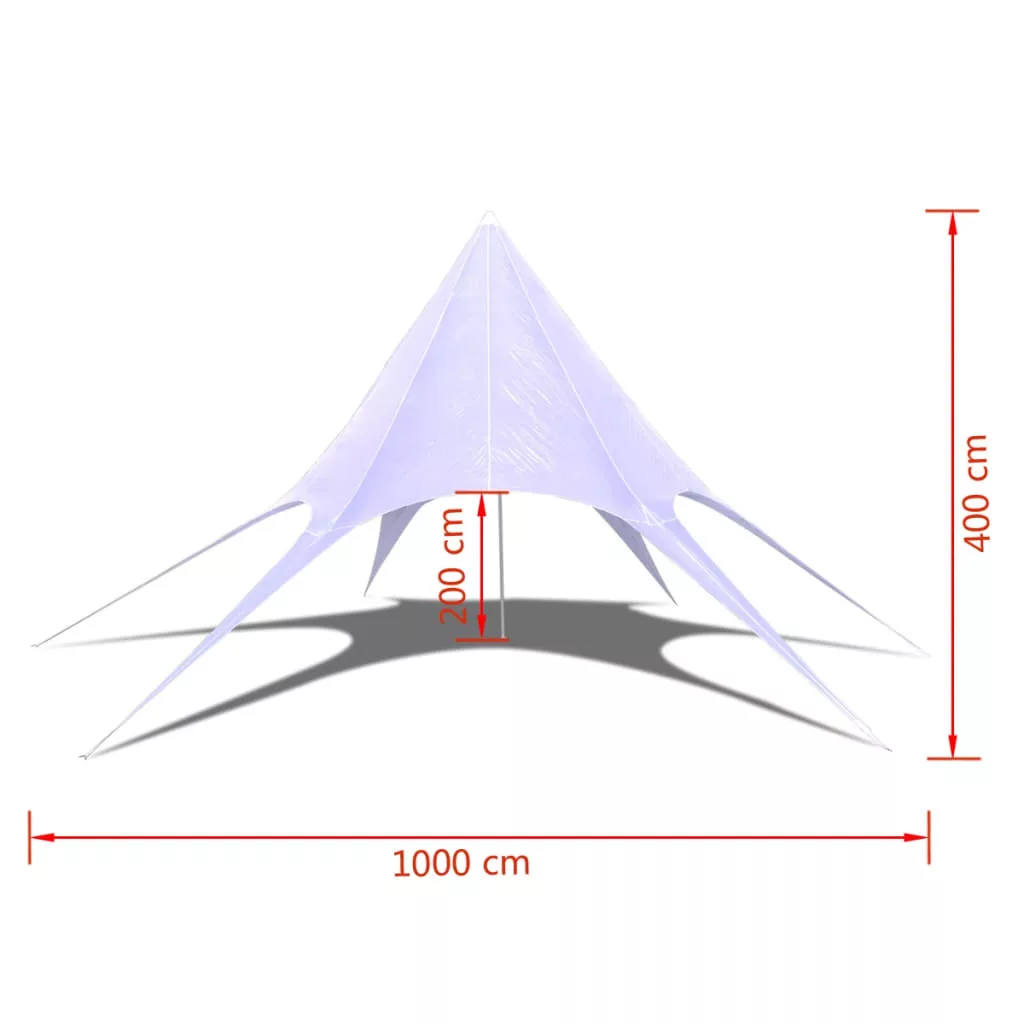 Ez a pavilon/sátor könnyen és gyorsan felállítható füves vagy földes felületeken a hat mellékelt cövek segítségével. Csak néhány percet vesz igénybe!!! Ez a csillagos pavilon akár 10 méter átmérőjű területet is lefedhet. UV-álló és időjárásálló Oxford anyagból készült, így évekig fog szolgálni.