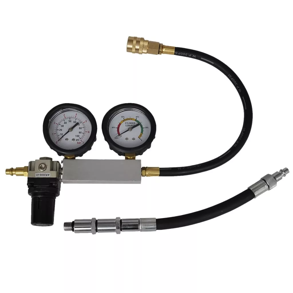 Ez a henger szivárgásérzékelő készlet gyorsan diagnosztizálja a motor belső problémáit, például a rossz gyűrűket, szelepeket és szivárgó fejtömítéseket. A kettős nyomásmérő fémházzal rendelkezik, kemény védőgumis külsővel. A bemeneti nyomásmérő skálája 0-100 psi, a második mérő a szivárgás %-át méri. Ez a szivárgásmérő 0% és 100% közötti szivárgást mutat 5% -os lépésekben. A könnyen olvasható mérőeszközöket a megfelelő tesztelés és a pontos eredmények érdekében tervezték.