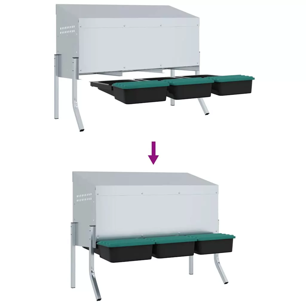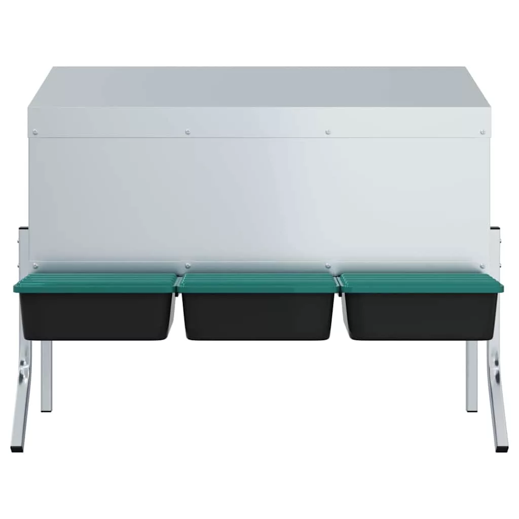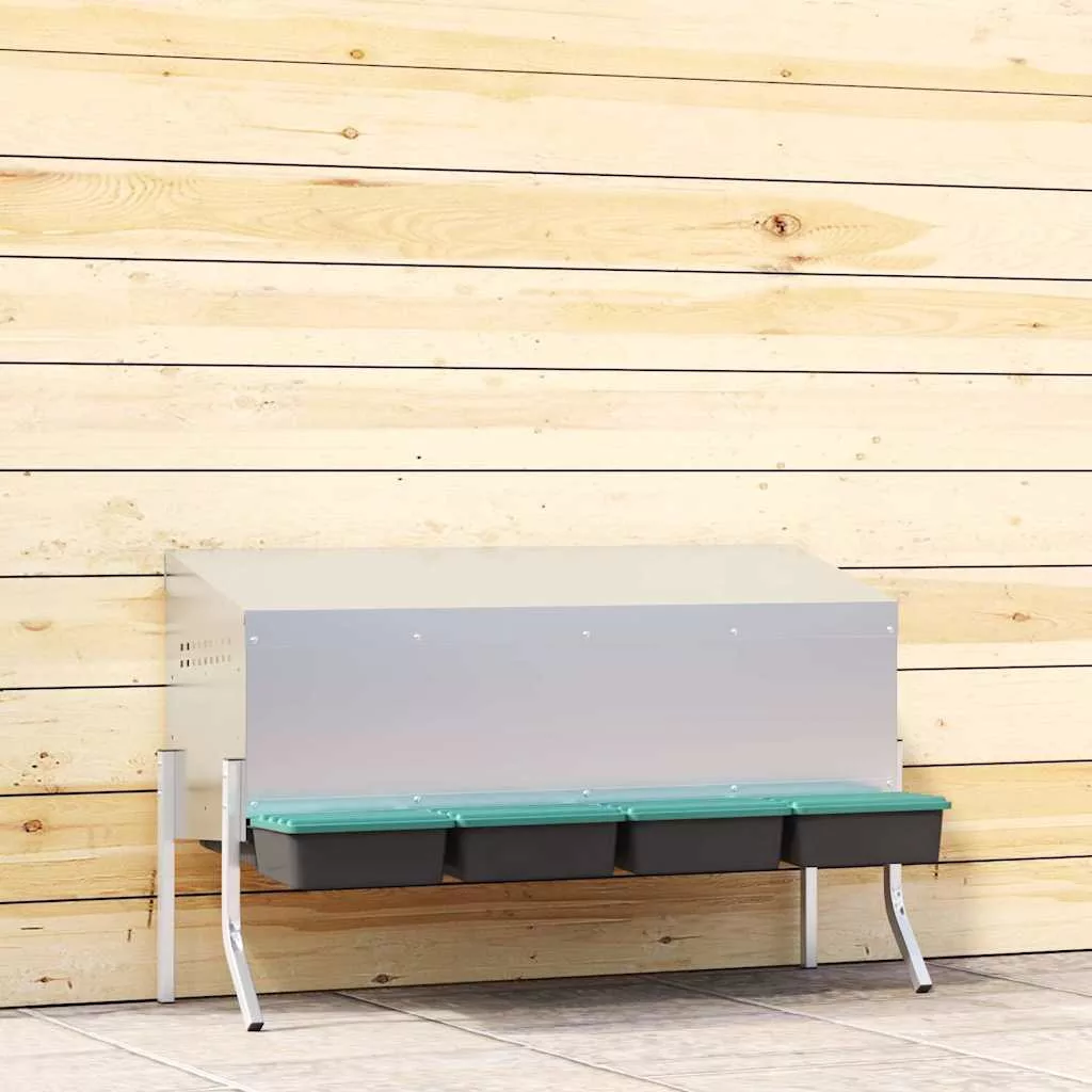 - Robusztus és tartós anyag: Horganyzott acélból és erős polipropilén műanyagból készült, ez a fészkelő láda tartós használatra készült, hosszú távú teljesítményt és védelmet nyújt csirkéinek a zord kültéri körülményekkel szemben.