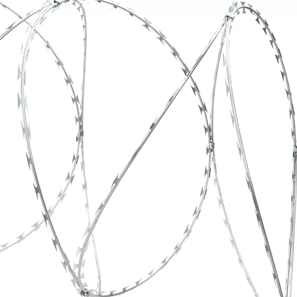 A masszív szögesdrót már fel van tekerve, és minden hurkon 3 kapocs van, ami csőszerű formát eredményez, amelynek rései túl kicsik ahhoz, hogy átmásszon rajta. Ezzel elkerülheti a nem kívánt vendégeket a kertben. A szögesdrótot feltekerheti a kerítés tetejére a nagyobb biztonság érdekében. Kiváló minőségű horganyzott acélból készült szögesdrótunk időjárás- és vízálló, valamint rendkívül tartós.