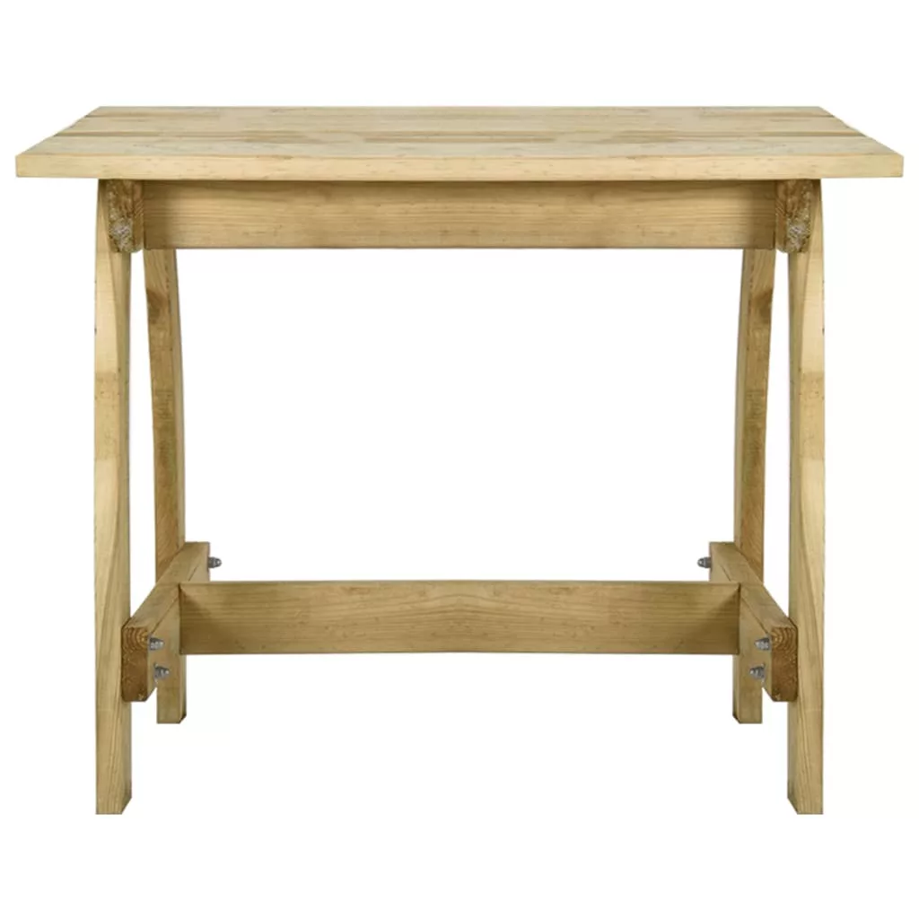 Ez a kültéri asztal zöld impregnált fenyőfából készült, így rendkívül stabil, tartós és rozsdaálló. A kerti asztal ideális választás ha pihenésre vágyik egy romantikus nyaraló kertjében, vagy akár egy szabadtéri étkezéshez családjával és barátaival egy idillikus kerti tó partján. Felhívjuk figyelmét, hogy a fa természetes alapanyag, így esetenként tökéletlenségek is felfedezhetők rajta.