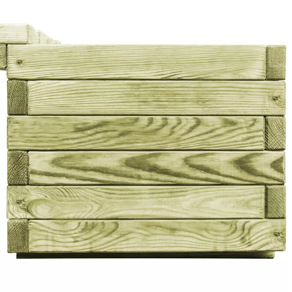 A kerti pad kiváló minőségű zöld impregnált fenyőfából készült, ezért masszív, tartós és időjárásálló. A két oldalán található virágtartó ládában gyönyörű virágok pompázhatnak majd. A kültéri virágtartó pad összeszerelése egyszerű.