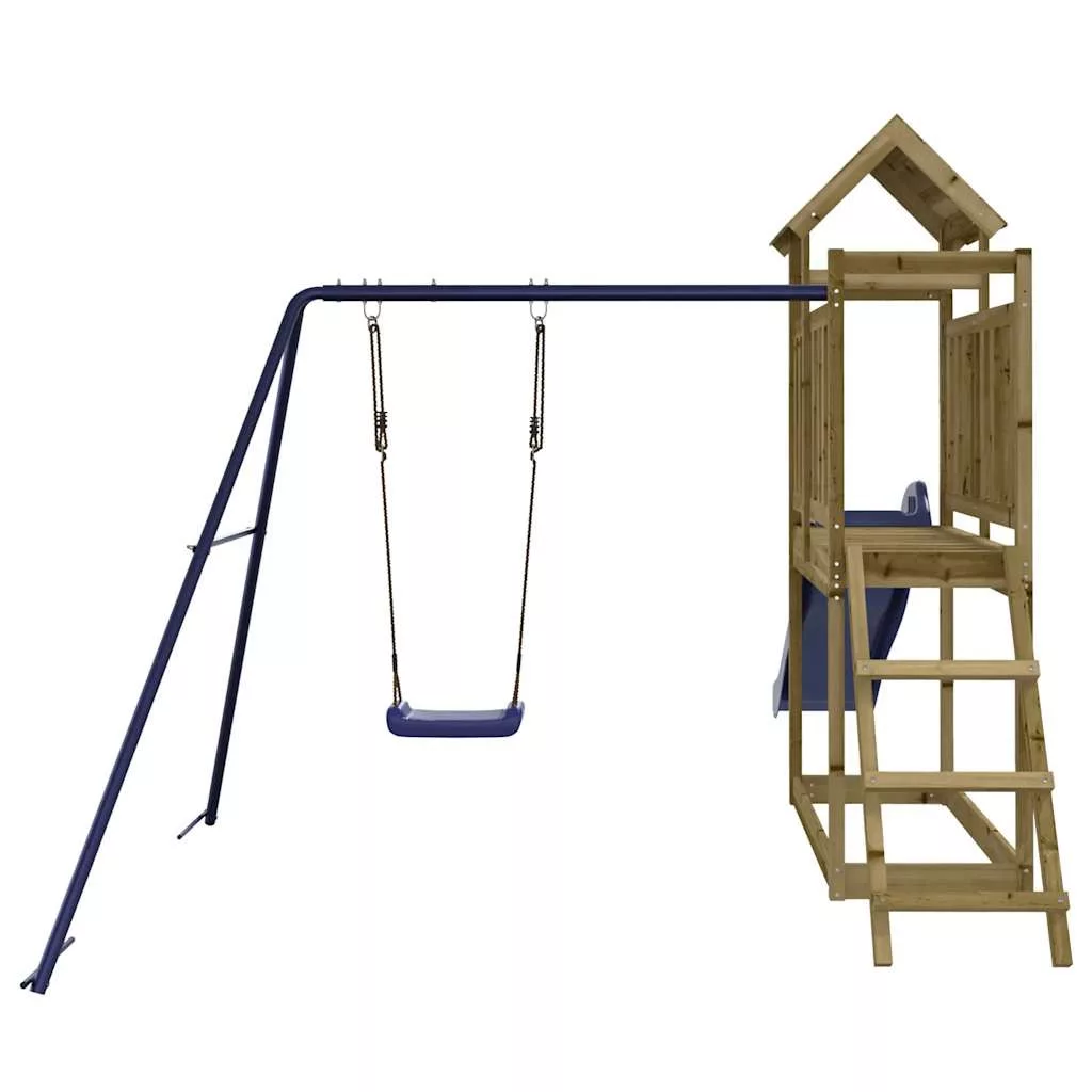 - Tartós anyag: Ez a csúszdával ellátott mászóka vákuumnyomással impregnált fenyőfából készült. A tömör fenyőfa egy gyönyörű, természetes anyag. A fenyőfa egyenes erezetű, a csomók pedig jellegzetes, rusztikus megjelenést biztosítanak az anyagnak. Az impregnálás egy tartósítási eljárás, amely egy zárt, túlnyomásos berendezés használatával történik. A nyomáskezelés növeli a korhadással és a vízzel szembeni ellenállást.