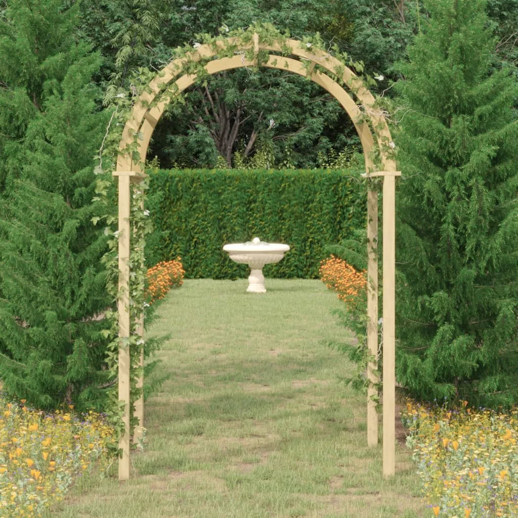A zöld impregnált tömör fenyőfából készült a kerti boltív nagyon masszív és strapabíró. Impozáns bejárat kialakítására is használható.