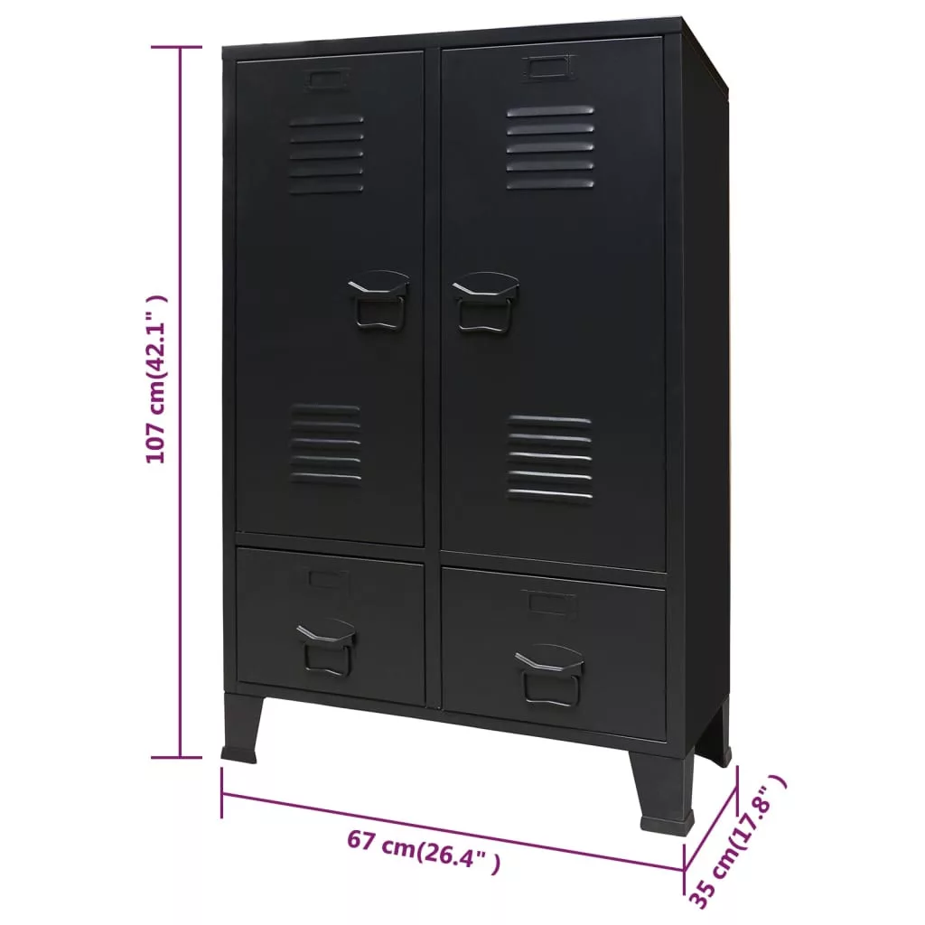 A szekrénynek 2 állítható belső polca van, így ruháit különböző szempontok szerint rendezheti, valamint 2 fiókkal rendelkezik a zoknik, alsóneműk stb. tárolására és rendszerezésére. Mindkét ajtón névjegykártyatartó és szellőzőnyílások vannak, amelyek fokozzák ipari illetve edzőterem jellegét. A tárolószekrény fémlemezből készült, ezáltal tartós és könnyen tisztítható. Összeszerelése egyszerű.