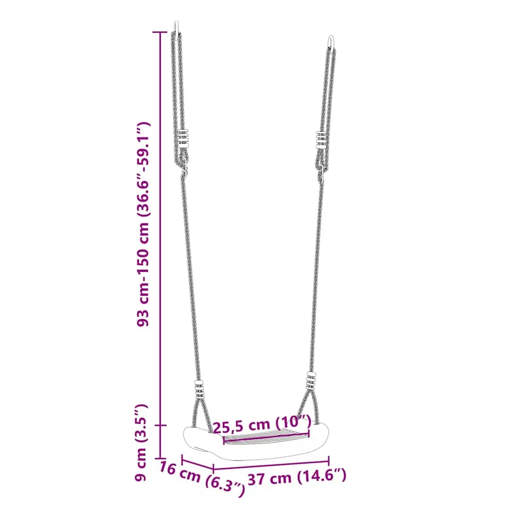 - Biztonságos és stabil telepítés: Ez a kültéri hinta masszív fém rögzítőgyűrűkkel rendelkezik a kötélen, amelyek biztosítják a biztonságos rögzítést bármilyen hintakerethez vagy más megfelelő szerelvényhez.