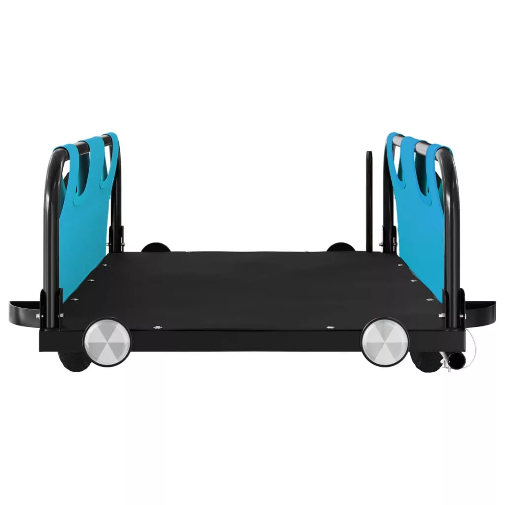 - Robusztus felépítés: Ennek a kerékpár-utánfutónak robusztus szerkezete van, amely porszórt vasból készült. A vas erős és kemény anyag. Az egyik kedvenc tömör anyag az építőiparban és bútorgyártásban. A vas felületén a porbevonat védőréteget képez a rozsda, korrózió és kopás ellen.