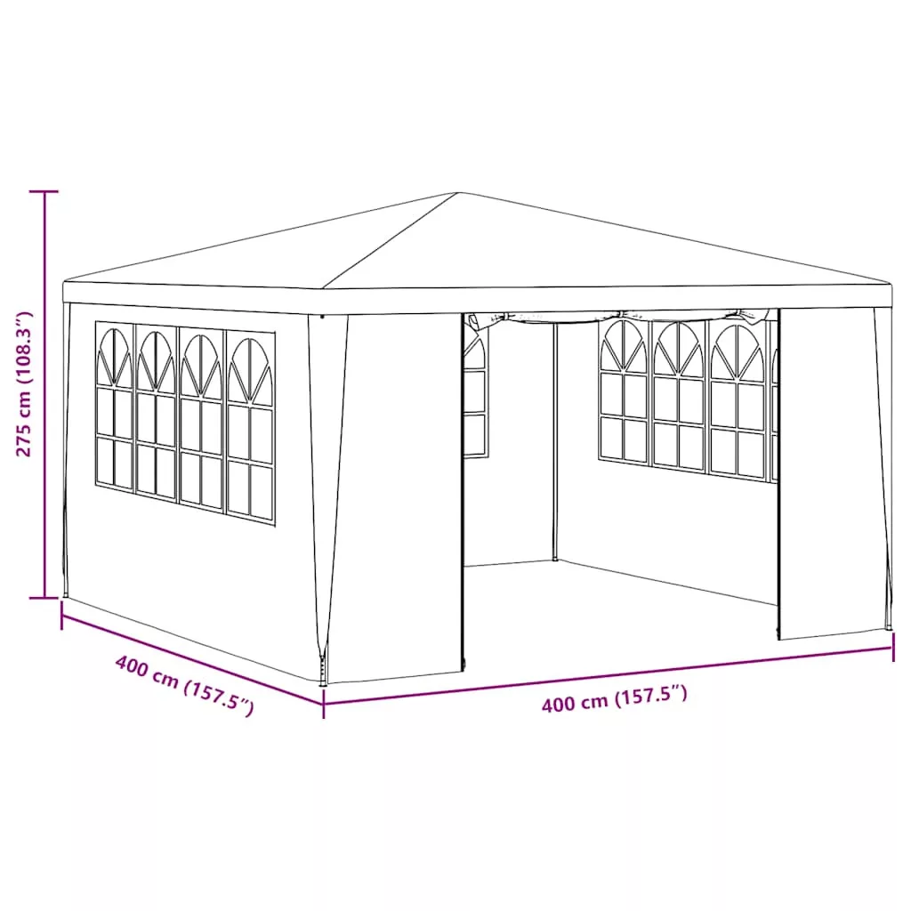 A kerti sátor UV- és vízálló polietilén anyagból készült, ezért nagyon praktikus kültéri használatra. A váz rozsdaálló acélból készült, így a kültéri ponyva stabil és tartós. A partisátor oldalsó panelekkel rendelkezik, mindegyik dekoratív ablakokkal, és 1 ajtópanellel, cipzárral a könnyű bejutás érdekében. A kerti pavilon könnyen összeszerelhető.