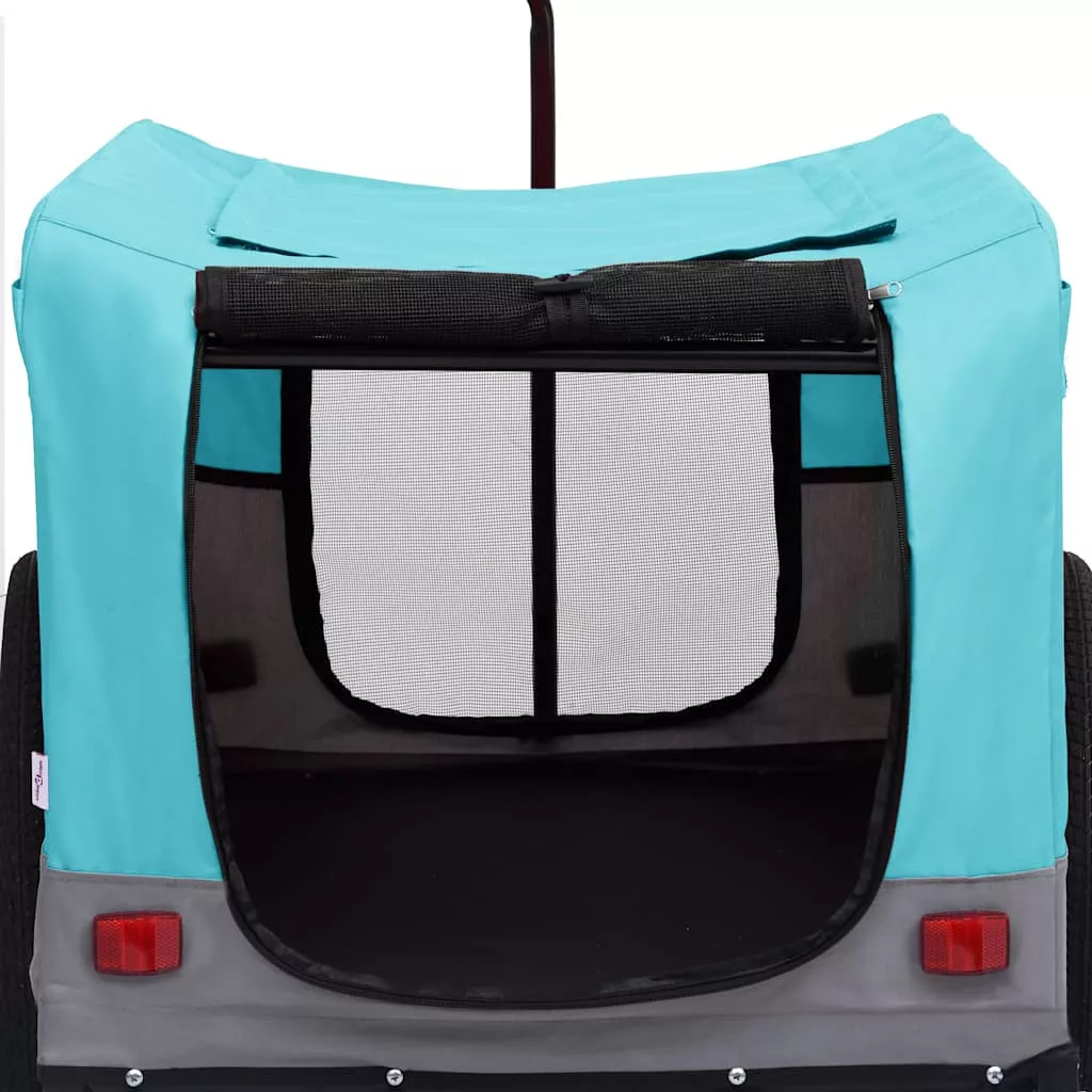A kisállatszállító kerékpár-utánfutó erős acél vázzal rendelkezik és oxford szövetből készült, így vízálló, időtálló és könnyen karbantartható. A mindkét oldalon található, hálós kialakítású ablakok lehetővé teszik a megfelelő szellőzést, miközben az elülső és hátsó nyílások a könnyű bejutást segítik. A kutyaszállító kerékpár-utánfutó felfüggesztése biztosítja a zökkenőmentes utazást, és 360 fokban elforgatható. Biztonsági forgócsuklója biztosítja, hogy az utánfutó függőlegesen maradjon, ha a kerékpár felborul. A kisállat kerékpár-utánfutó gyorskioldó csatlakozóval rendelkezik a kerékpárhoz való egyszerű rögzítéshez. Emellett a vonóhorog a helytakarékosság érdekében összecsukható.