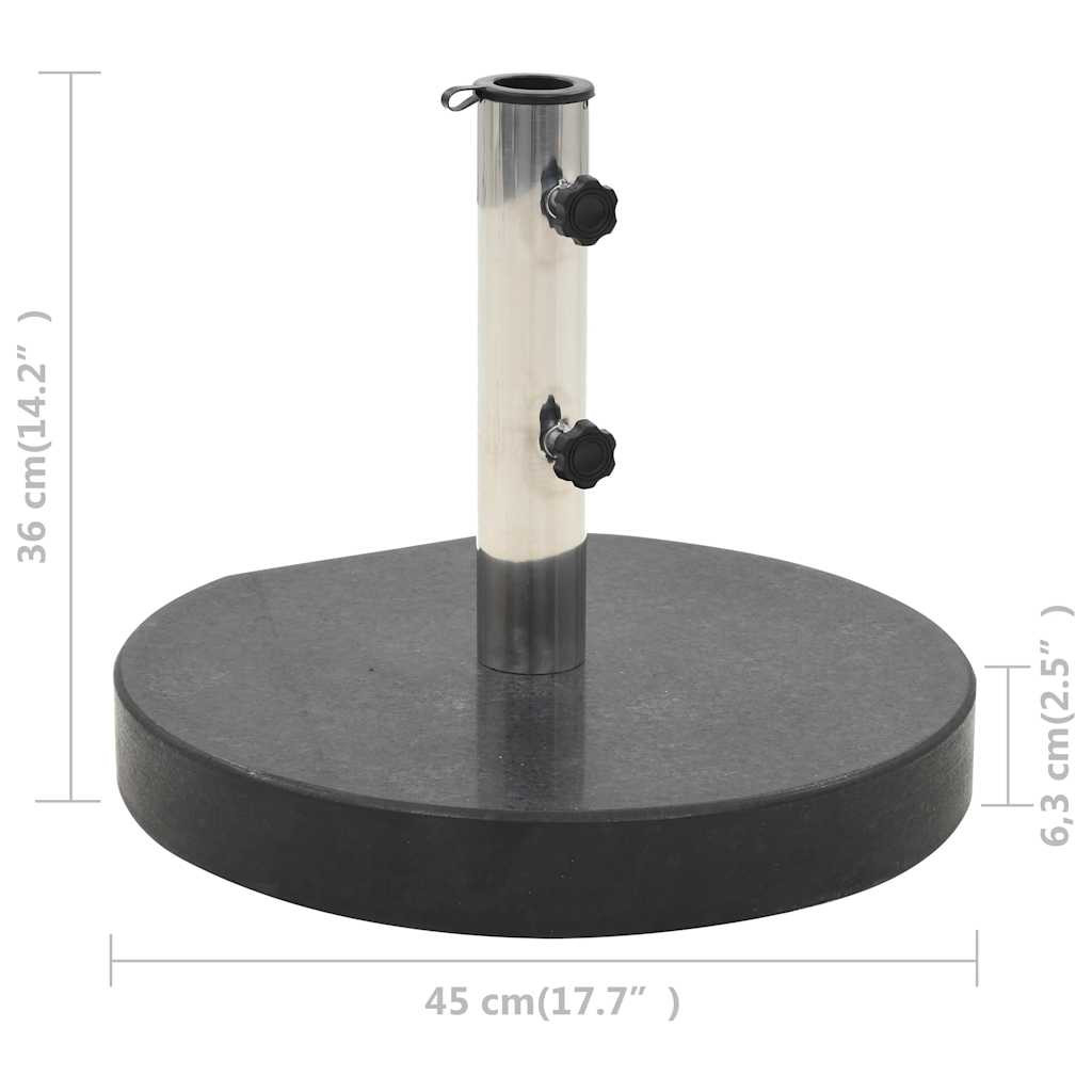 Erős gránitból készült és 28,5 kg súlyú, ez a napernyő nehezék rendkívül stabil, és még szeles időben is stabilan tartja a napernyőt. A napernyőtartó 2 reteszelő csavarral rendelkezik, hogy az ernyőrúd a helyén maradjon. A csomag egy adaptert tartalmaz, így a napernyőtalp tartó 38/48 mm átmérőjű napernyőrudakhoz is alkalmas.