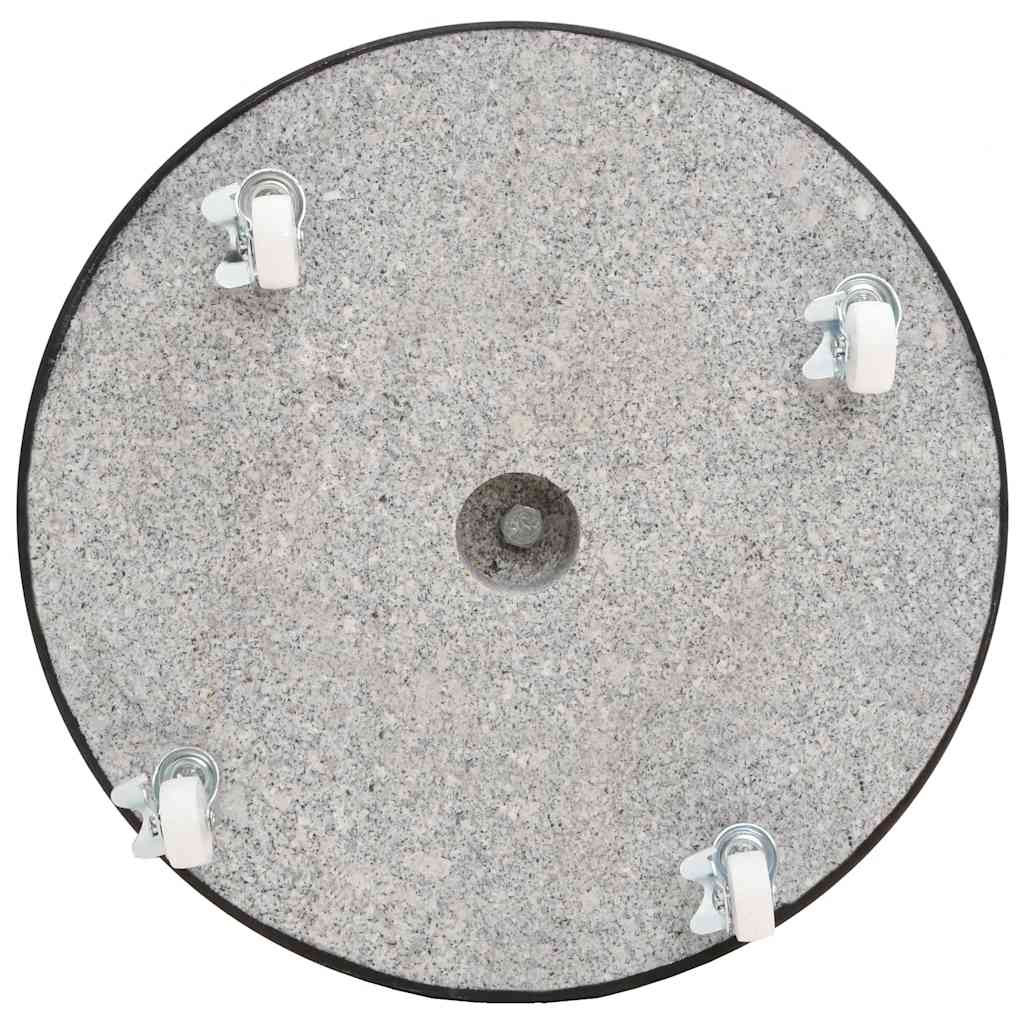 A kemény gránitból készült 30 kg-os napernyőnehezék rendkívül stabil, így napernyője még szeles napokon is garantáltan állva marad. Az ernyőtartó 2 rögzítőcsavarral rendelkezik, amelyekkel az ernyő rúdja rögzíthető. A termékhez tartozik egy adapter, amivel a napernyőtartó talp 38/48 mm átmérőjű napernyőrúdhoz is megfelelő. Emellett a 4 görgő segítségével a napernyőtalp könnyen mozgatható.