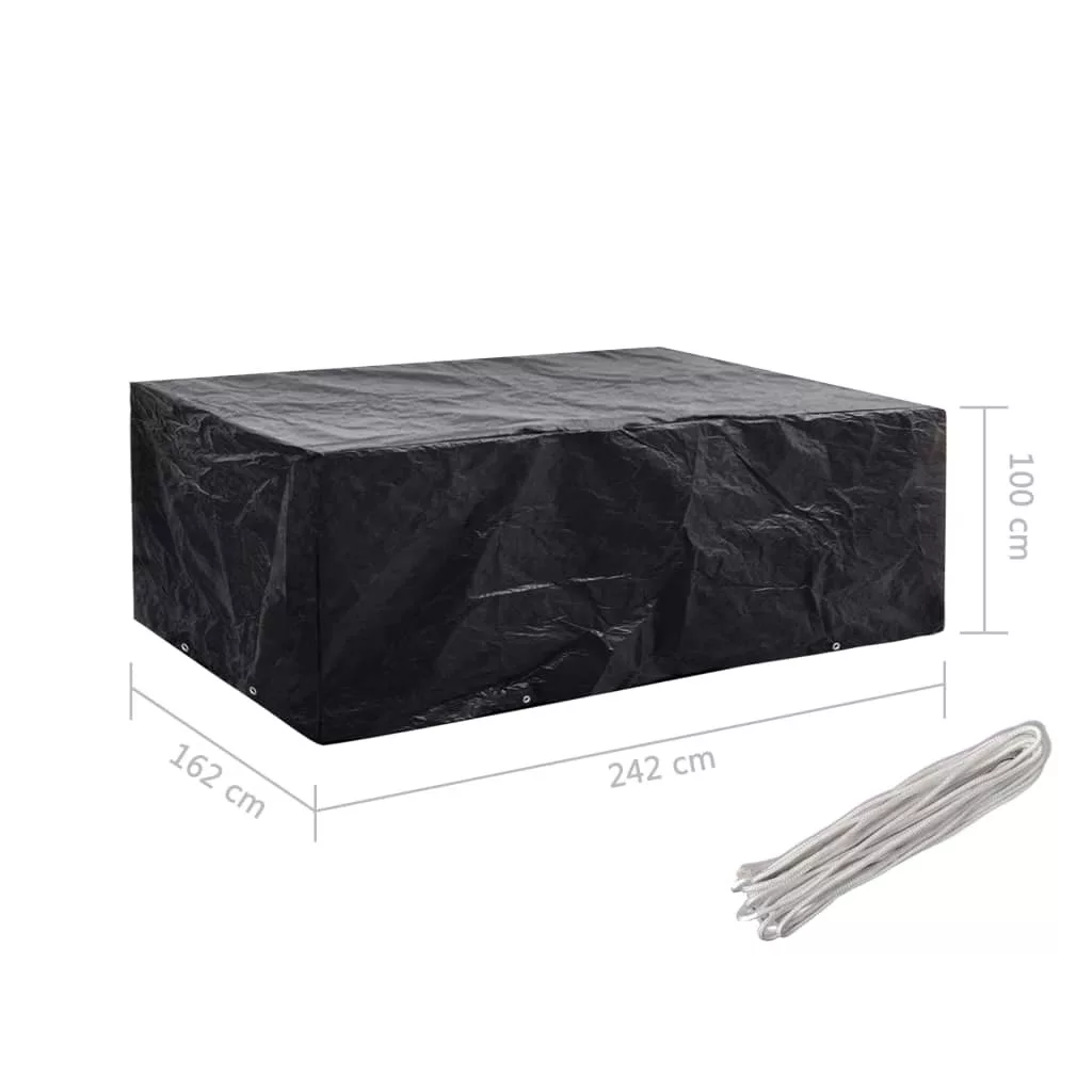 Ez a kiváló minőségű PE huzat alkalmas arra, hogy egész évben megvédje kerti bútorgarnitúráját a szennyeződéstől, széltől, esőtől és UV fénytől.