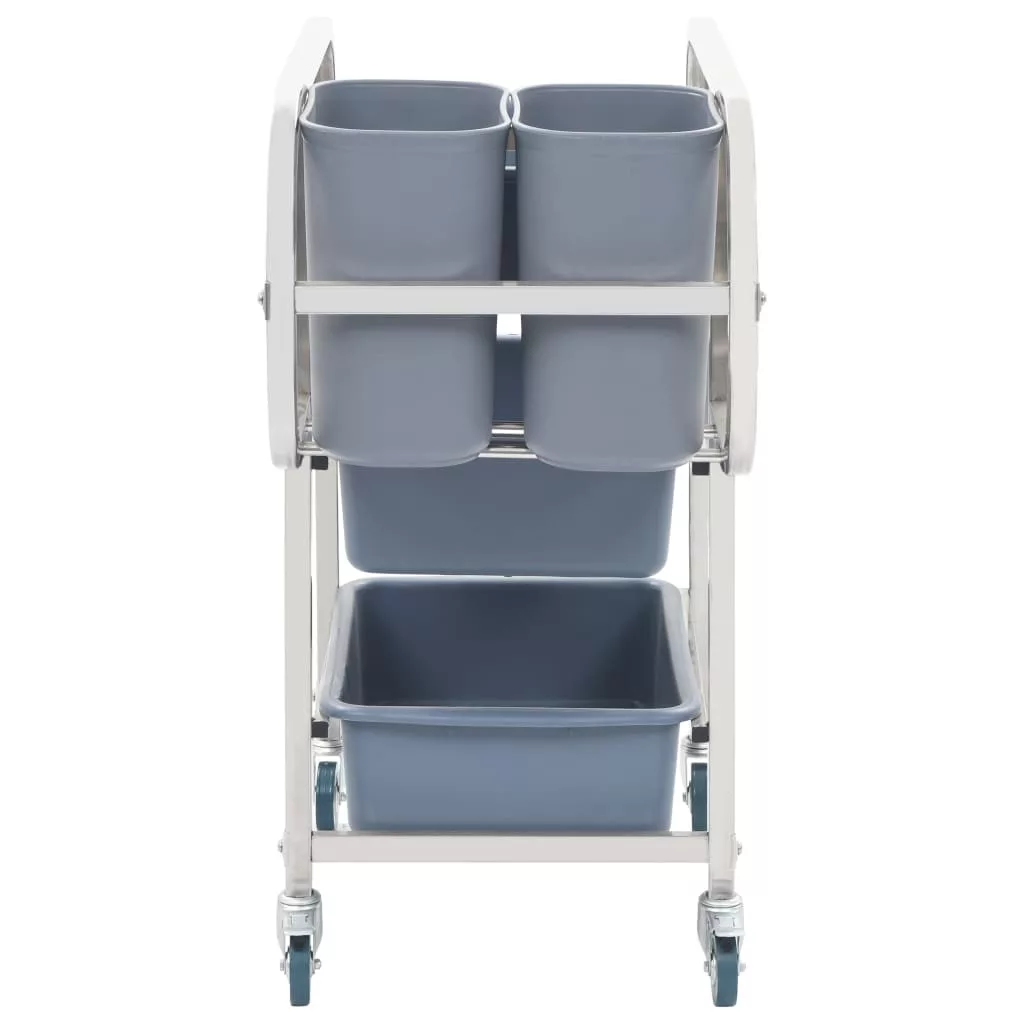 A műanyagtárolók bőséges helyet nyújtanak az ételek és élelmiszer-hulladékok összegyűjtéséhez. A rozsdamentes acélváz stabilan és erősen tartja a kocsit még teljes terhelés esetén is. A kézikocsi könnyedén és csendesen mozgatható az egyenletesen gördülő kerekeknek köszönhetően. Mindemellett a görgők közül kettő fékkel van felszerelve, hogy megakadályozza a kocsi elgurulását, ami azt jelenti, hogy eszközök és egyéb napi háztartási termékek tárolására is használhatja.
