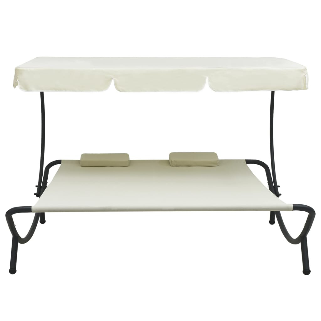 Ez a kétszemélyes napozóágy, a 2 hozzátartozó párnával és a nagy ernyővel, egy igazán szembeötlő darab lesz, bárhova helyezve. Tökéletes választás kikapcsolódáshoz, vagy a családjával való időtöltéshez a kertben, az udvaron vagy a teraszon.