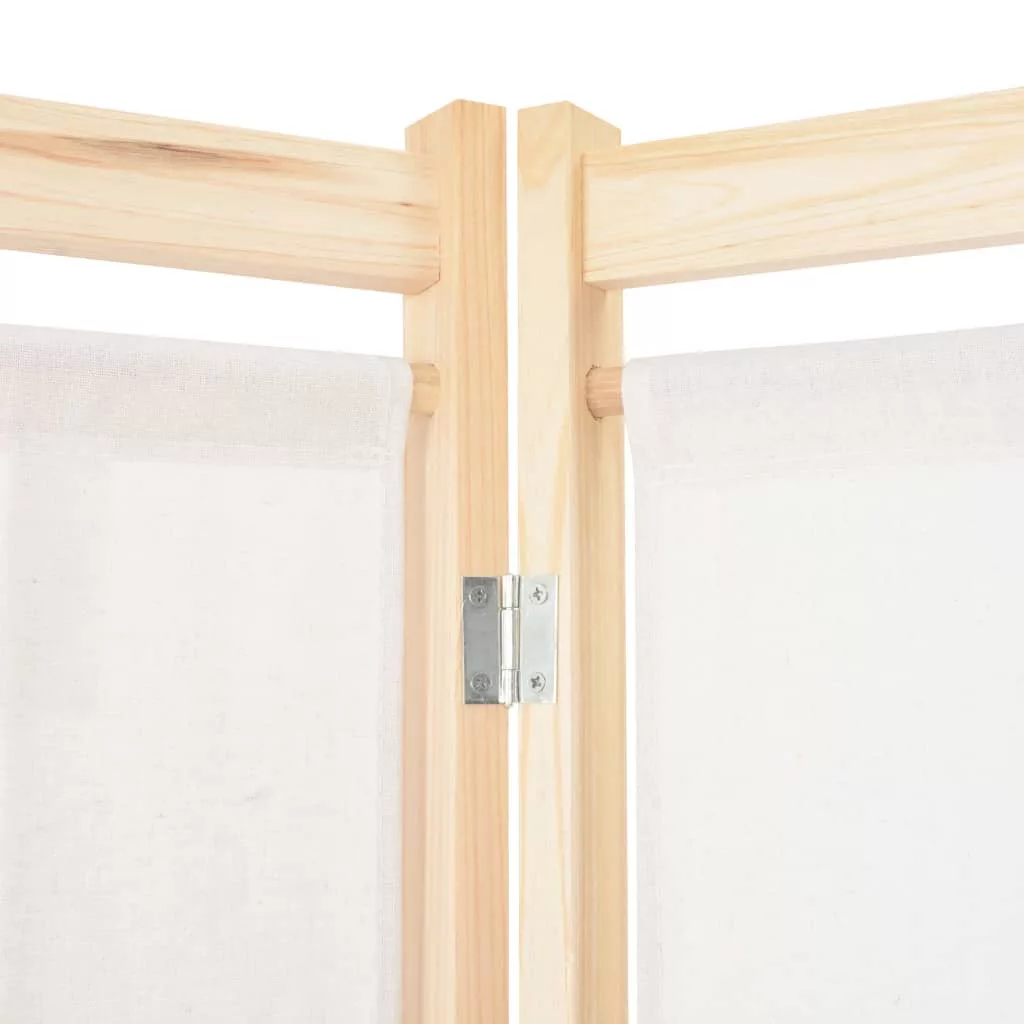 A paraván váza fából készült, a takarópanelek pedig szövetből. Használaton kívül egyszerűen összecsukható.