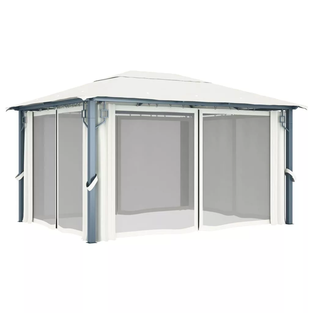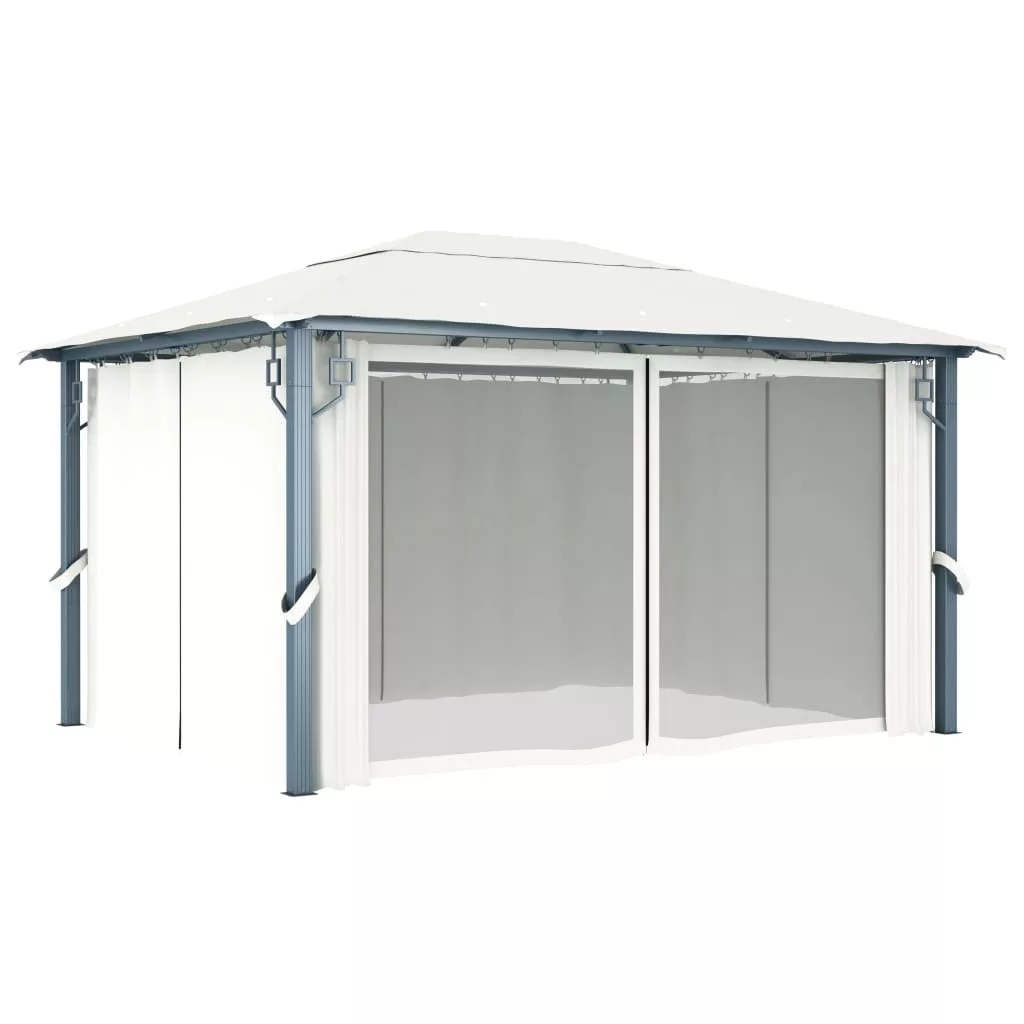 A PA festésű Oxford szövetből készült tető megvédi a napfényt a vakító fénytől és a közvetlen napfény káros UV-sugaraitól. A pavilon masszív, erős alumíniumból és acélból készült, így ellenáll a rozsdának és nagyon stabil. A pavilon 4 oldalfallal rendelkezik, amelyek rossz időben behúzhatók. Hálós szúnyoghálók is tartoznak hozzá, hogy távol tartsák a rovarokat, miközben biztosítják a jó légáramlást. Tépőzárak is tartoznak a könnyű rögzítéshez.