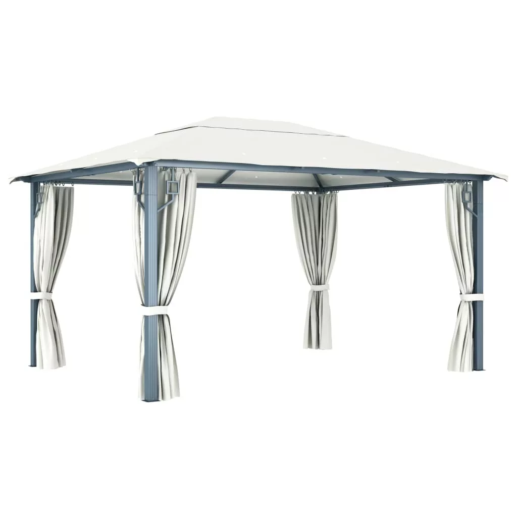 Ez a függönyös pavilon klasszikus és elegáns dizájnnal rendelkezik, amely tökéletes napellenzőt biztosít kültéri rendezvényekhez, például vacsorákhoz, grillezésekhez, családi összejövetelekhez és egyéb tevékenységekhez.
