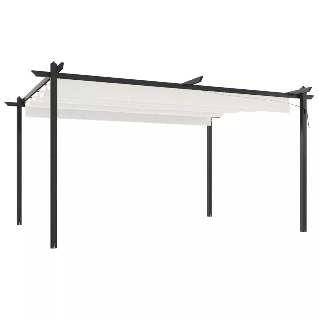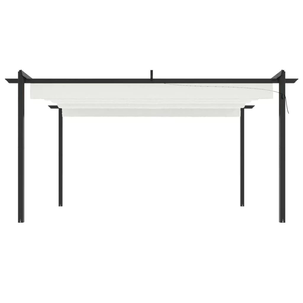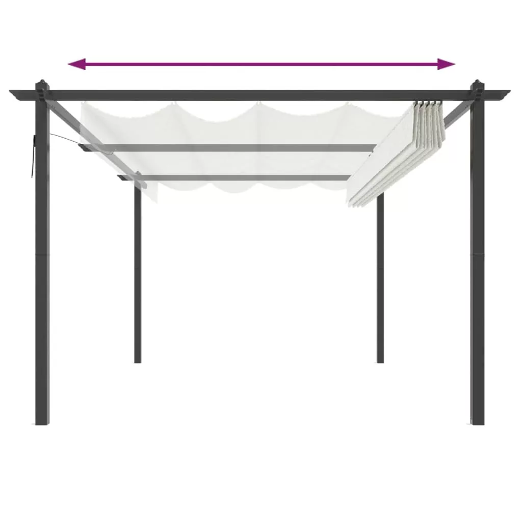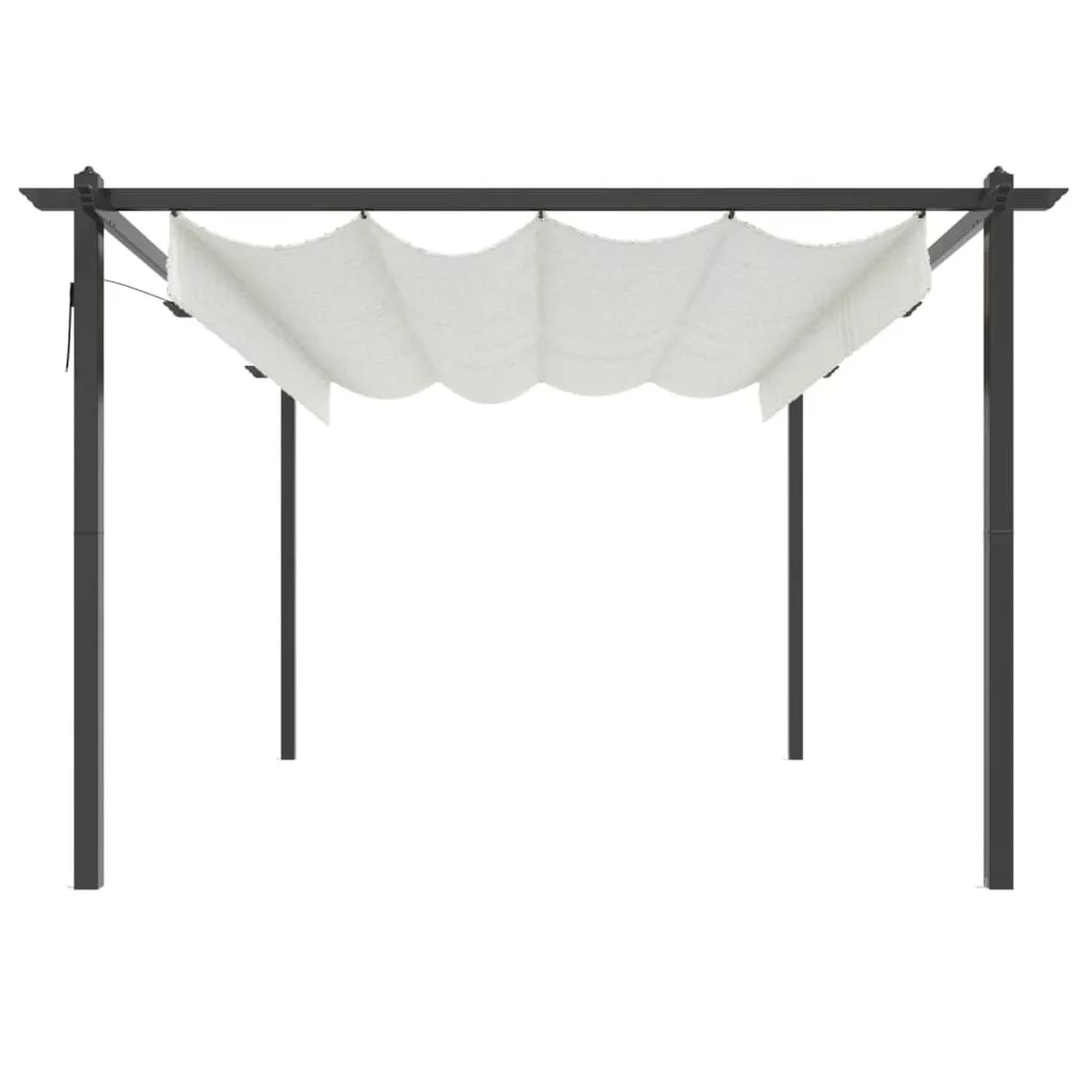 Ez a kültéri pavilon porszórt acélvázzal készült, így masszív és stabil. A pavilon behúzható, PA-bevonatú tetővel van felszerelve, amely UV- és vízálló. A tetőt könnyedén elforgathatja és ideális helyzetbe állíthatja a kézi rúd megrázásával. Nyissa ki, ha napsütésben szeretne élni, és csukja be árnyék vagy menedék érdekében. Ez a pavilon tökéletes választás kültéri tevékenységekhez.