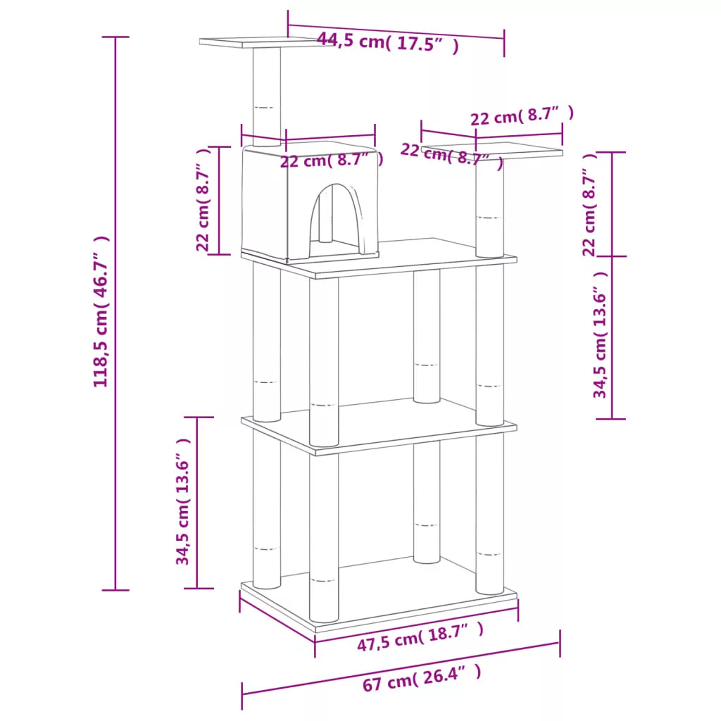 Ez a kaparófa tökéletes helyet biztosít cicái számára, hogy felmásszanak rá, kaparják, elrejtőzzenek benne és pihenjenek rajta. A kaparófa lehetővé teszi macskái számára, hogy nyújtózkodjanak és mozogjanak, különösen a hideg téli hónapokban, amikor bent kell maradniuk.