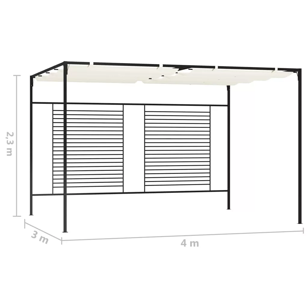 A pavilon tömör vasvázzal rendelkezik, így erős és masszív kültéri használatra. A behúzható tető védelmet nyújt a káros UV-sugarak és az eső ellen, hogy gond nélkül élvezhesse a kültéri eseményeket.