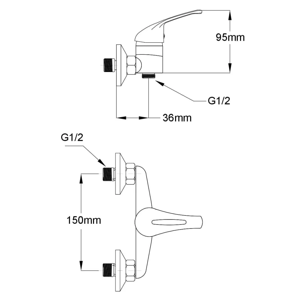 - A hideg-, meleg vizes csatlakozó középpontja közötti távolság: 150 mm
