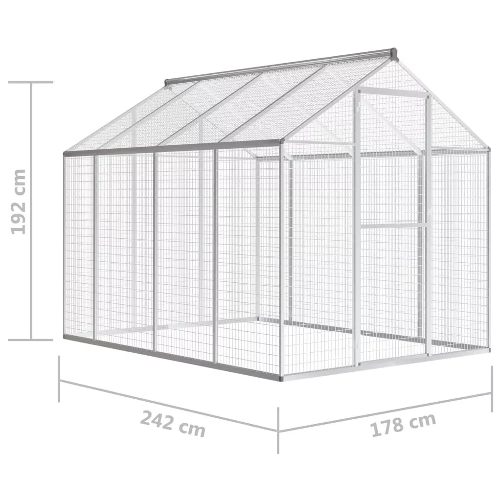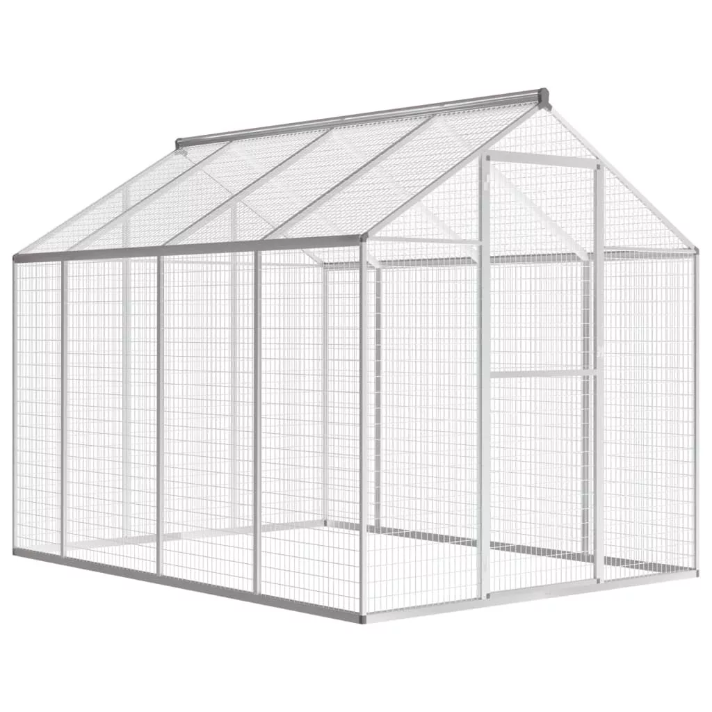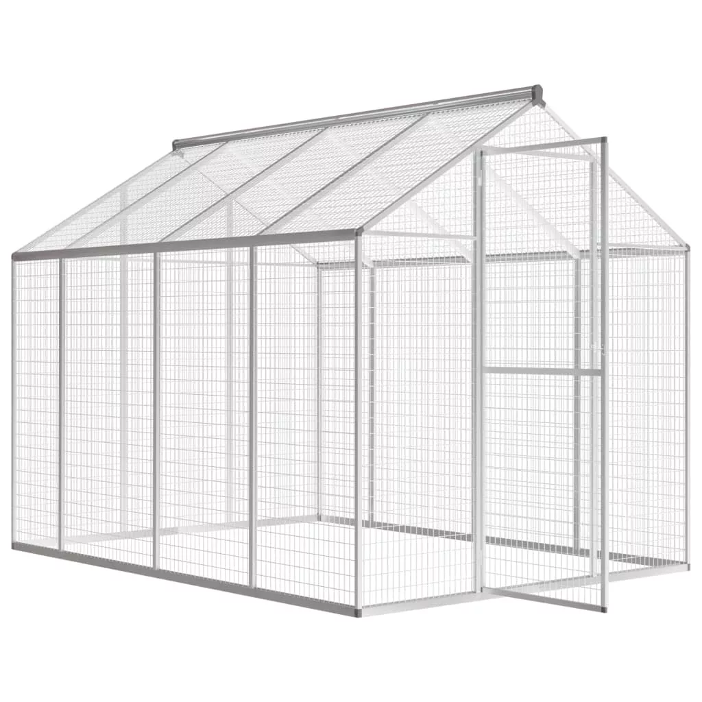 Az erős és karbantartást nem igénylő alumíniumszerkezetnek köszönhetően ez a madárház nehéz ajtókkal van ellátva. Annyira erős, hogy még a tetőről függő személyt is megtart.