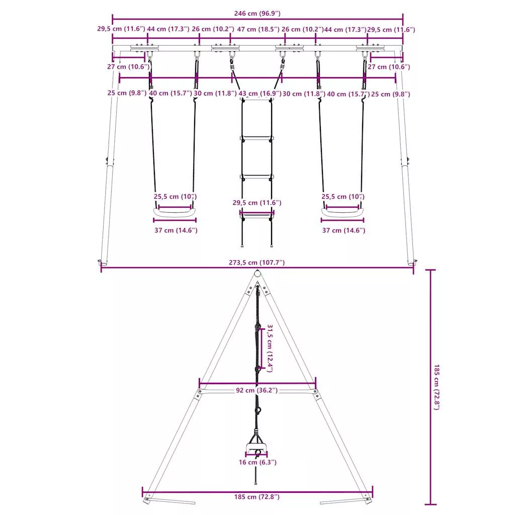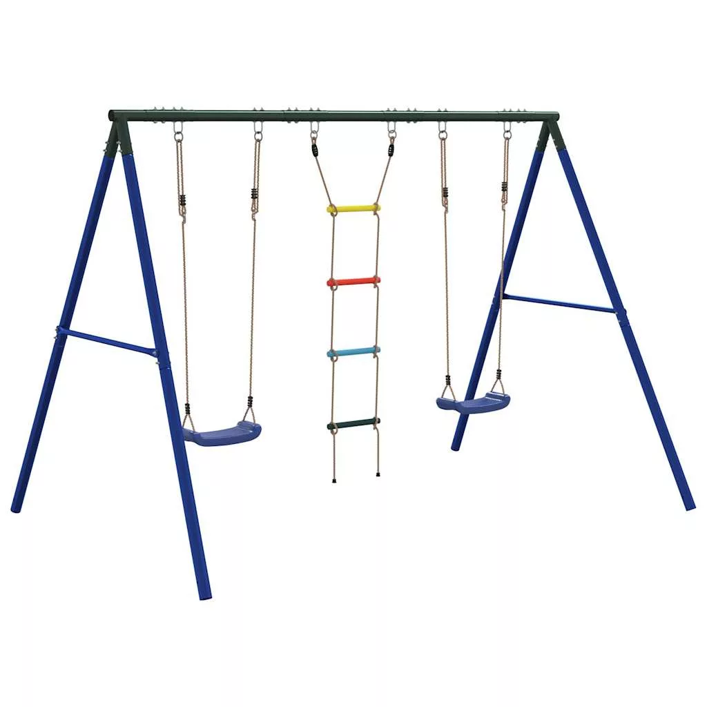 - Szórakoztató foglalkoztatóközpont: Ez a gyermekhintaszett 2 különböző játéklehetőséget tartalmaz két hintaüléssel és egy mászólétrával. Így a gyerekek kedvükre hintázhatnak és mászhatnak.