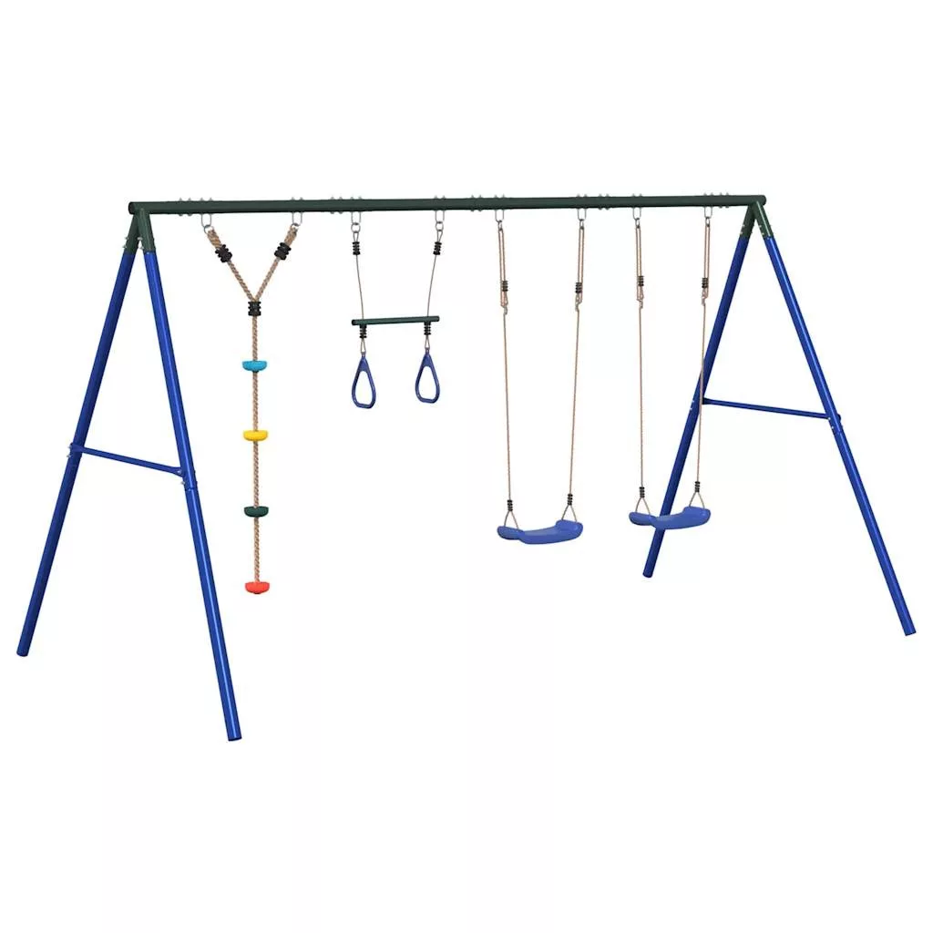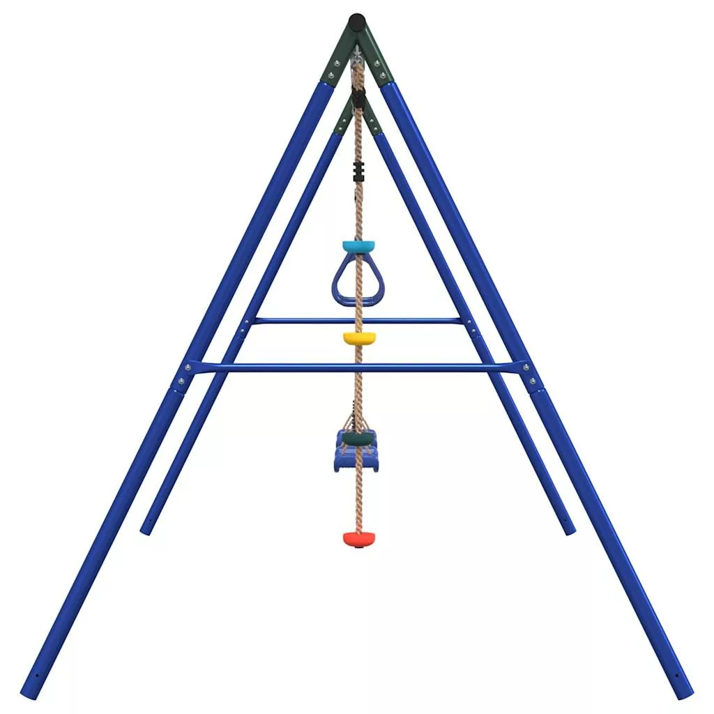 - Szórakoztató foglalkoztatóközpont: Ez a gyermekhintaszett 3 különböző játéklehetőséget tartalmaz két hintaüléssel, tárcsás hintával, és tornagyűrűkkel ellátott trapézzal. Így a gyerekek kedvükre hintázhatnak és mászhatnak.
