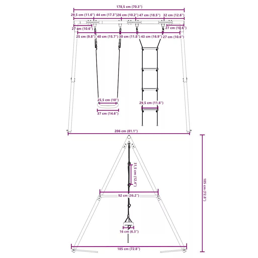 - Szórakoztató foglalkoztatóközpont: Ez a gyermekhintaszett 2 különböző játéklehetőséget tartalmaz hintaüléssel és mászólétrával. Így a gyerekek kedvükre hintázhatnak és mászhatnak.