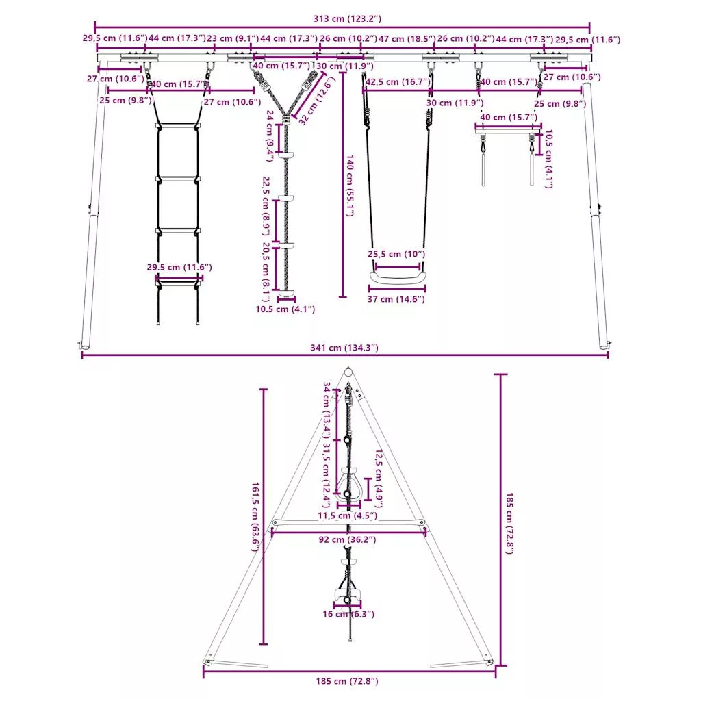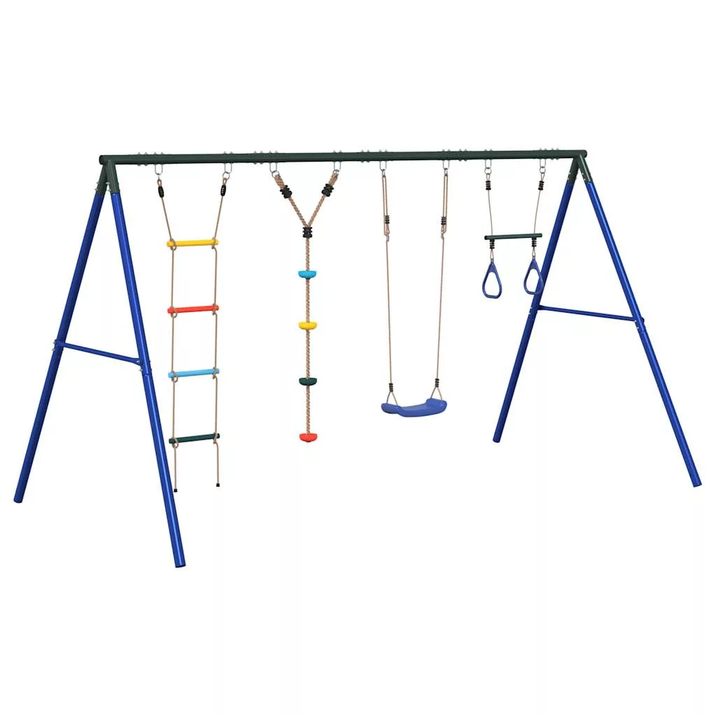 • Szórakoztató foglalkoztatóközpont: Ez a gyermekhintaszett 4 különböző játéklehetőséget tartalmaz hintaüléssel, tárcsás hintával, mászólétrával, és tornagyűrűkkel ellátott trapézzal. Így a gyerekek kedvükre hintázhatnak és mászhatnak.
