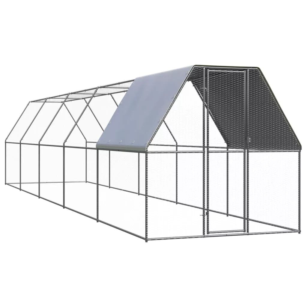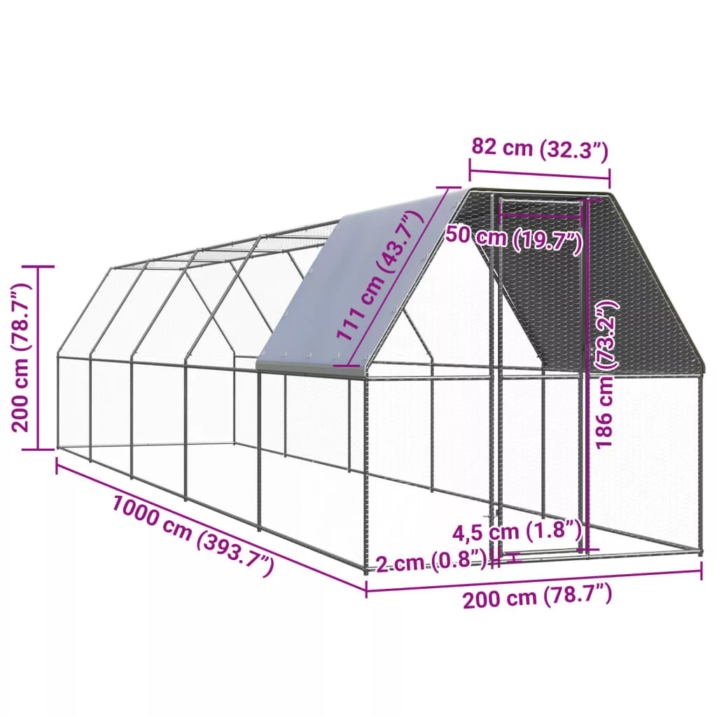 Ez a csirkeutca horganyzott acélból készült. Víz- és UV-álló polietilén tetővel rendelkezik. A kapu zárral van felszerelve, ami extra biztonságot nyújt kisállatai számára.