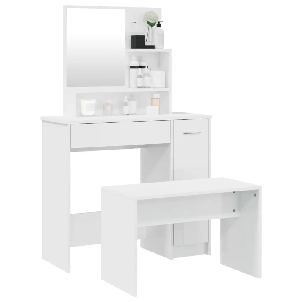 vidaXL magasfényű fehér fésülködőasztal-szett 86,5 x 35 x 136 cm