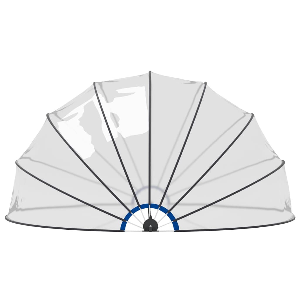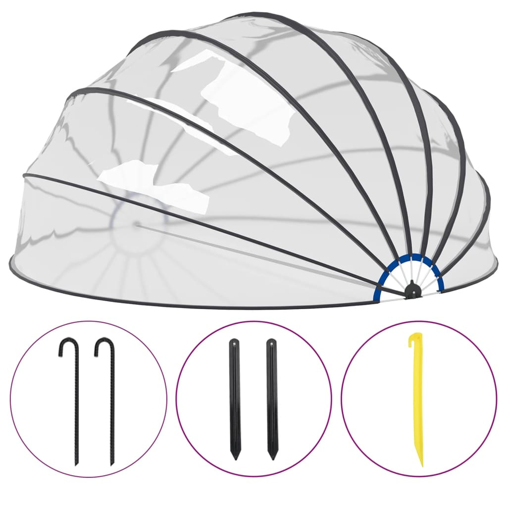Ez az UPF 30 PVC-ből készült, üvegszálas szerkezetű medencetakaró kiváló védelmet nyújt a nap és az eső ellen. Megakadályozza a külső szennyeződések, például levelek, rovarok és a por bejutását a medencébe. Szükség esetén biztosítja a víz gyorsabb felmelegedését és a kis éjszakai hőveszteséget. A tető könnyen nyitható az egyedi csuklós mechanizmusnak köszönhetően. Az átlátszó anyagnak köszönhetően nem marad le semmiről, ami a fürdőn kívül történik. A kupola rögzítéséhez a szállítmány tüskéket és szegeket tartalmaz. Nem kell aggódnia, hogy a medencekupolát elfújja a szél.