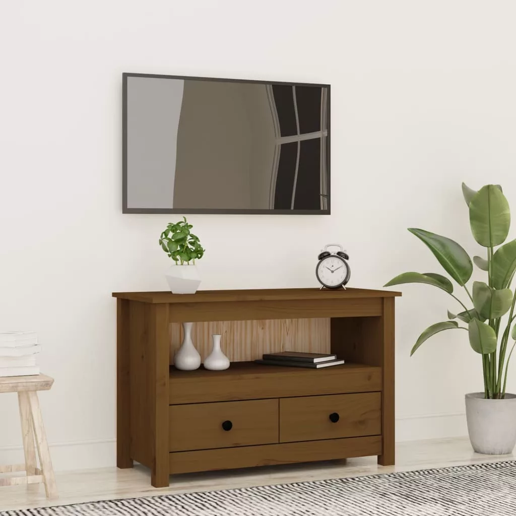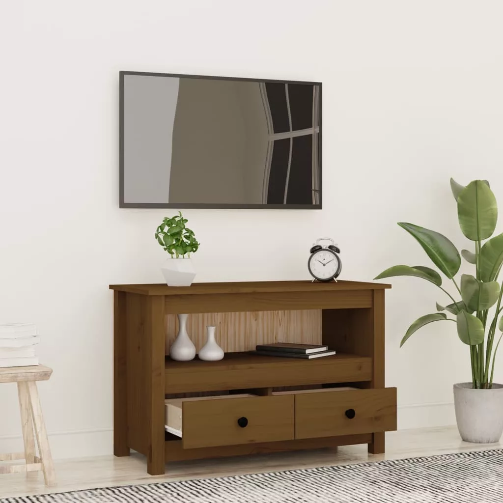 vidaXL mézbarna tömör fenyőfa TV-szekrény 79 x 35 x 52 cm