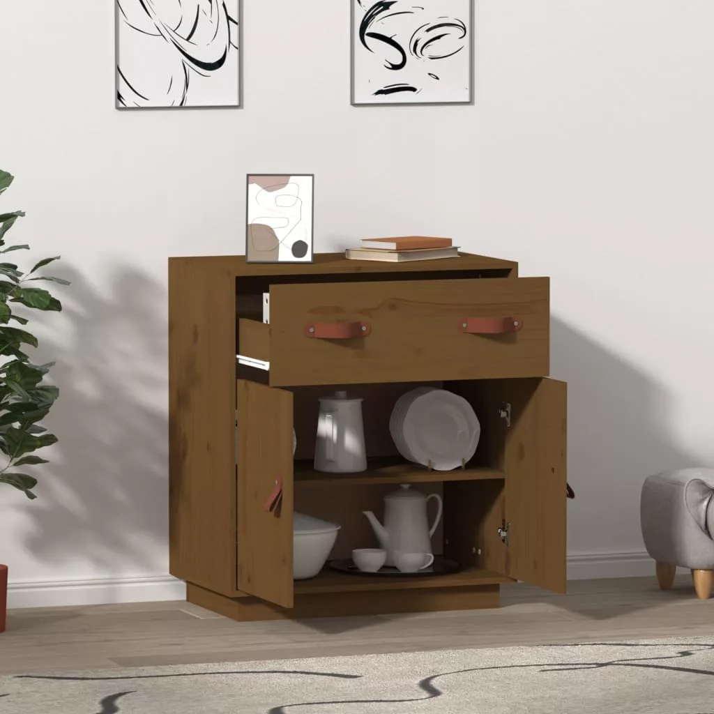 Ez a praktikus fa tálalószekrény számos igényét kielégíti, és a helyiség ideális kiegészítője lesz.