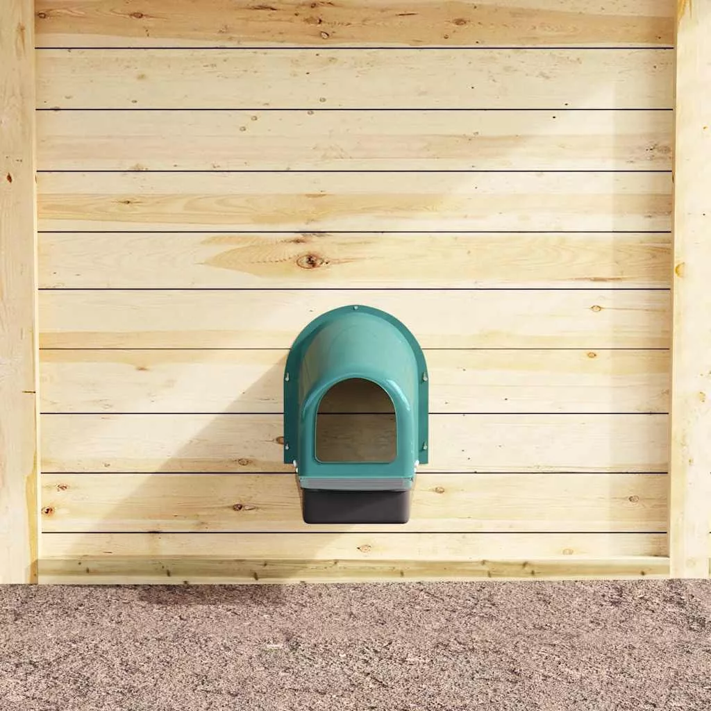 - Helytakarékos kialakítás: A csirkefészkelő doboz falra szerelhető kialakítása segít optimalizálni a korlátozott helyet az ólban, így több hely marad a csirkéknek a mozgásra, miközben kényelmes és biztonságos helyet biztosít számukra a tojásrakáshoz.