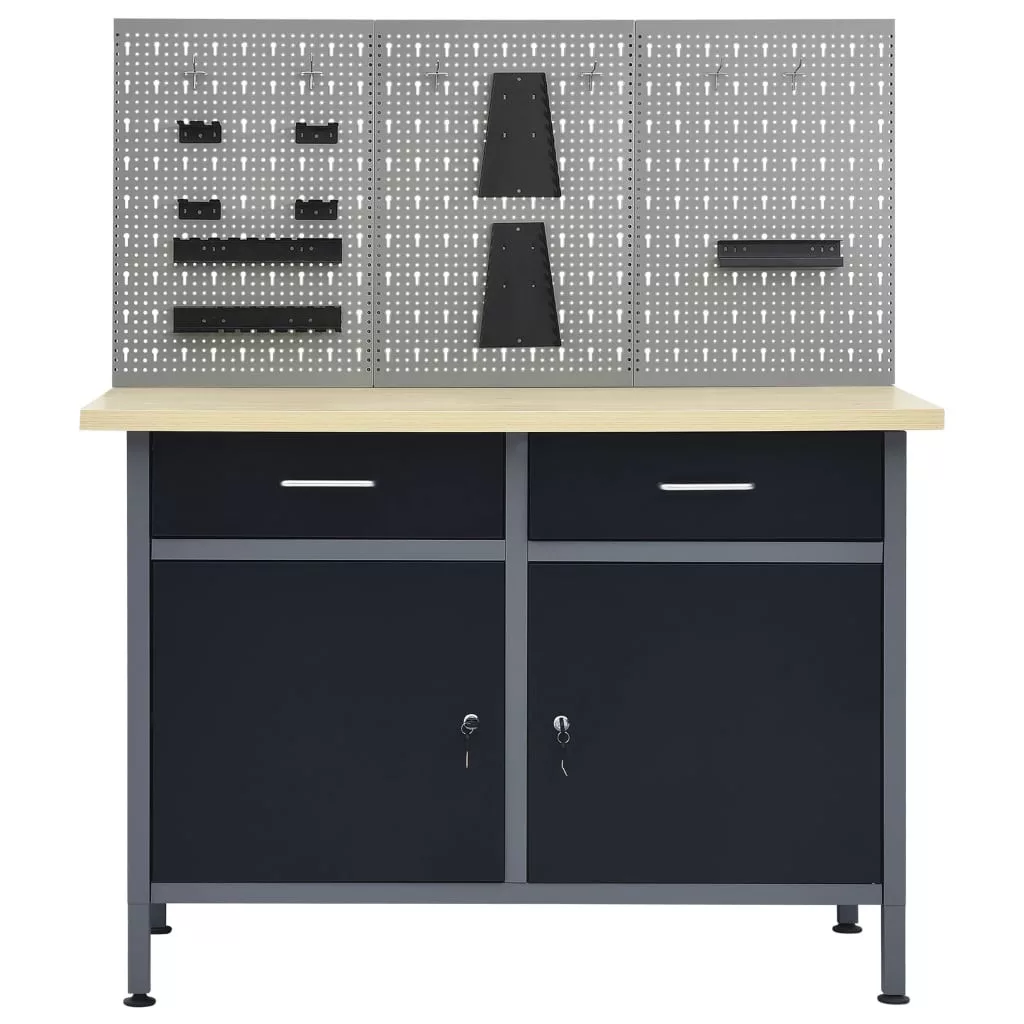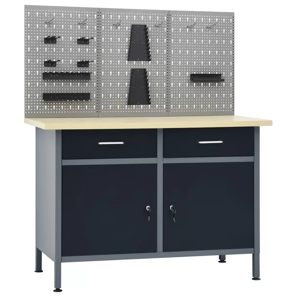 Ez az eszköz 1 nagy teherbírású munkapadból és 3 perforált fali panelből áll, így kiváló választás a különféle szerszámok rendszerezésére és tárolására.