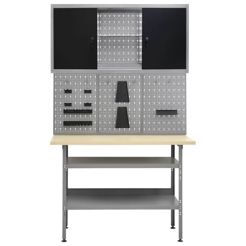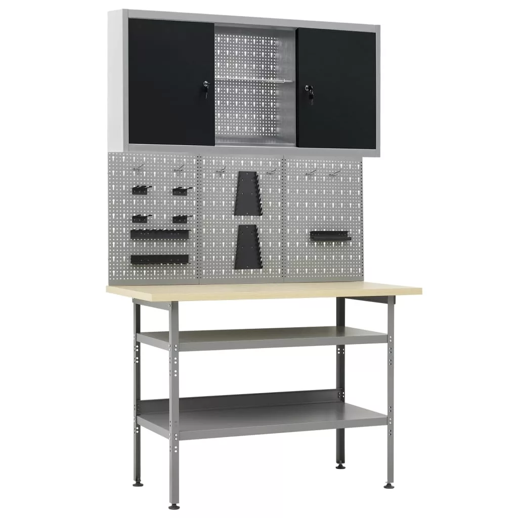 Ez a szett 1 munkapadból, 3 fali panelből és egy faliszekrényből áll, így praktikus tárolási megoldás műhelyében és garázsában.