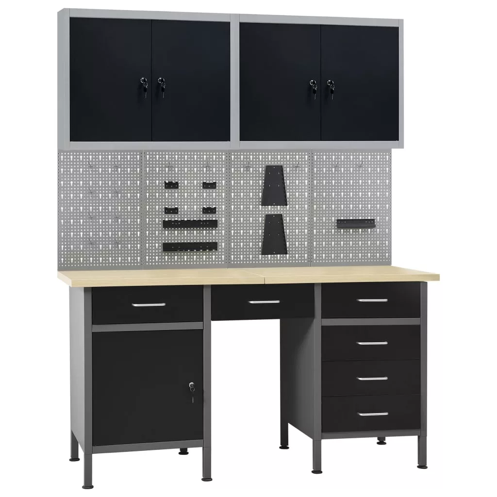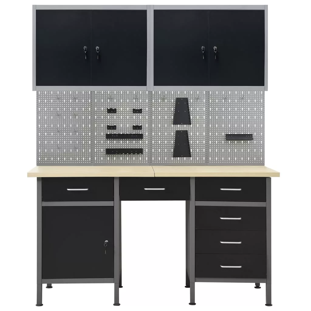 Ez az eszköz 1 nagy teherbírású munkapadból, 4 perforált fali panelből és 2 faliszekrényből áll, így kiváló választás a különféle szerszámok rendszerezésére és tárolására.