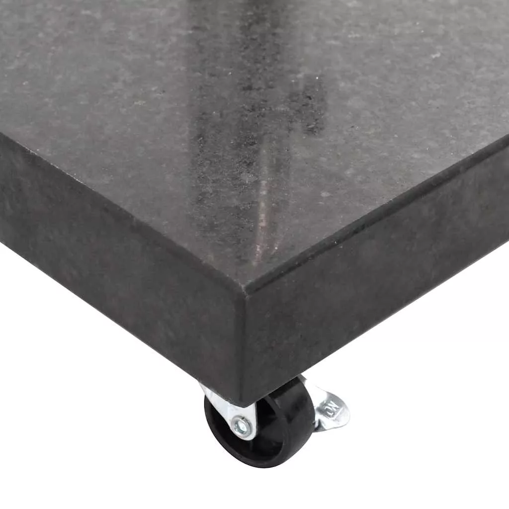 A kemény gránitból készült 30 kg-os napernyőnehezék rendkívül stabil, így napernyője még szeles napokon is garantáltan állva marad. Az ernyőtartó 2 rögzítőcsavarral rendelkezik, amelyekkel az ernyő rúdja rögzíthető. A termékhez tartozik egy adapter, amivel a napernyőtartó talp 38/48 mm átmérőjű napernyőrúdhoz is megfelelő. Emellett a 4 görgő segítségével a napernyőtalp könnyen mozgatható.