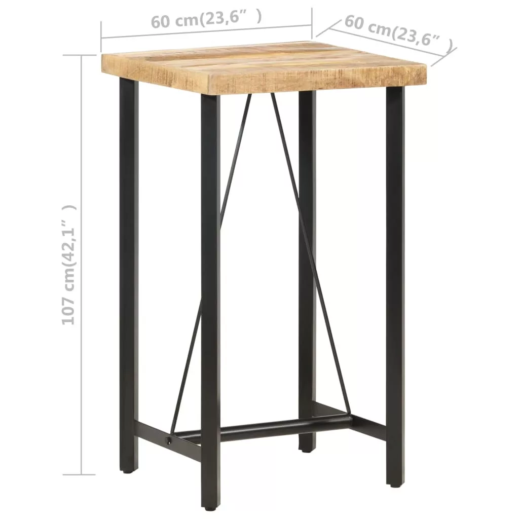 A bárasztal nyers mangófából készült, egy trópusi keményfából, amely nagy súlyt képes megtartani, időtálló, stabil és tartós. A kézműves munkának és a gyönyörű faerezetnek köszönhetően minden bútordarab egyedi, és kissé különbözik a többitől. Emellett a porszórt vaslábak extra stabilitást biztosítanak az asztalnak.