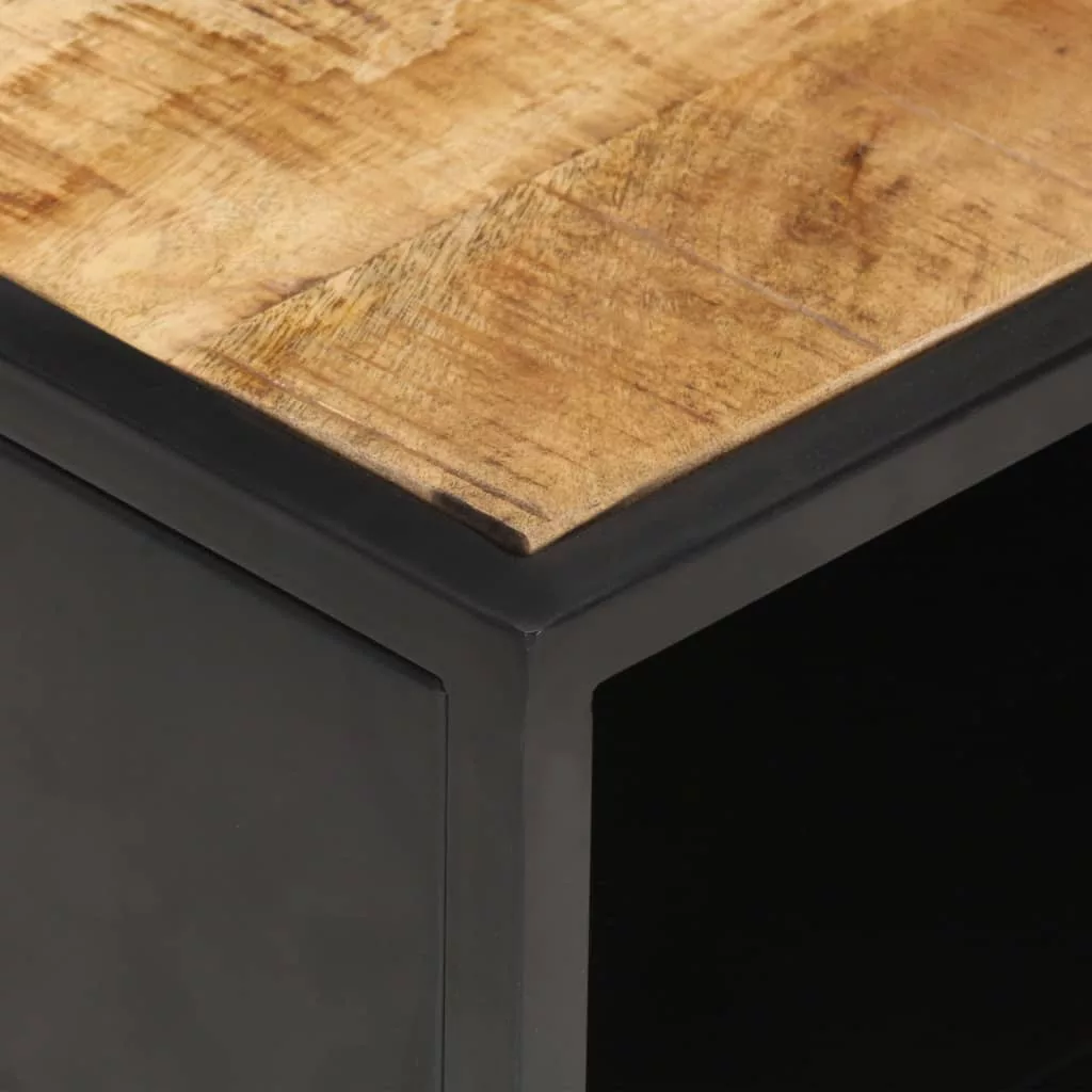 A dohányzóasztal kézzel készült nyers mangófából, mely rendkívül strapabíró, stabil, tartós, és gyönyörű, a kézműves munka viszont hozzájárul a látványos retró stílusához. A megmunkálás minden lépése a legnagyobb gondossággal történt, legyen szó akár a polírozásról, a festésről vagy a lakkozásról. A porszórt vasváznak köszönhetően egy igen robusztus bútordarab. Egy faragott mintával ellátott ajtóval és egy nyitott rekesszel rendelkezik, amely bőséges helyet biztosít könyvek, távirányítók és egyéb holmik rendezetten és kézközelben való tárolására.